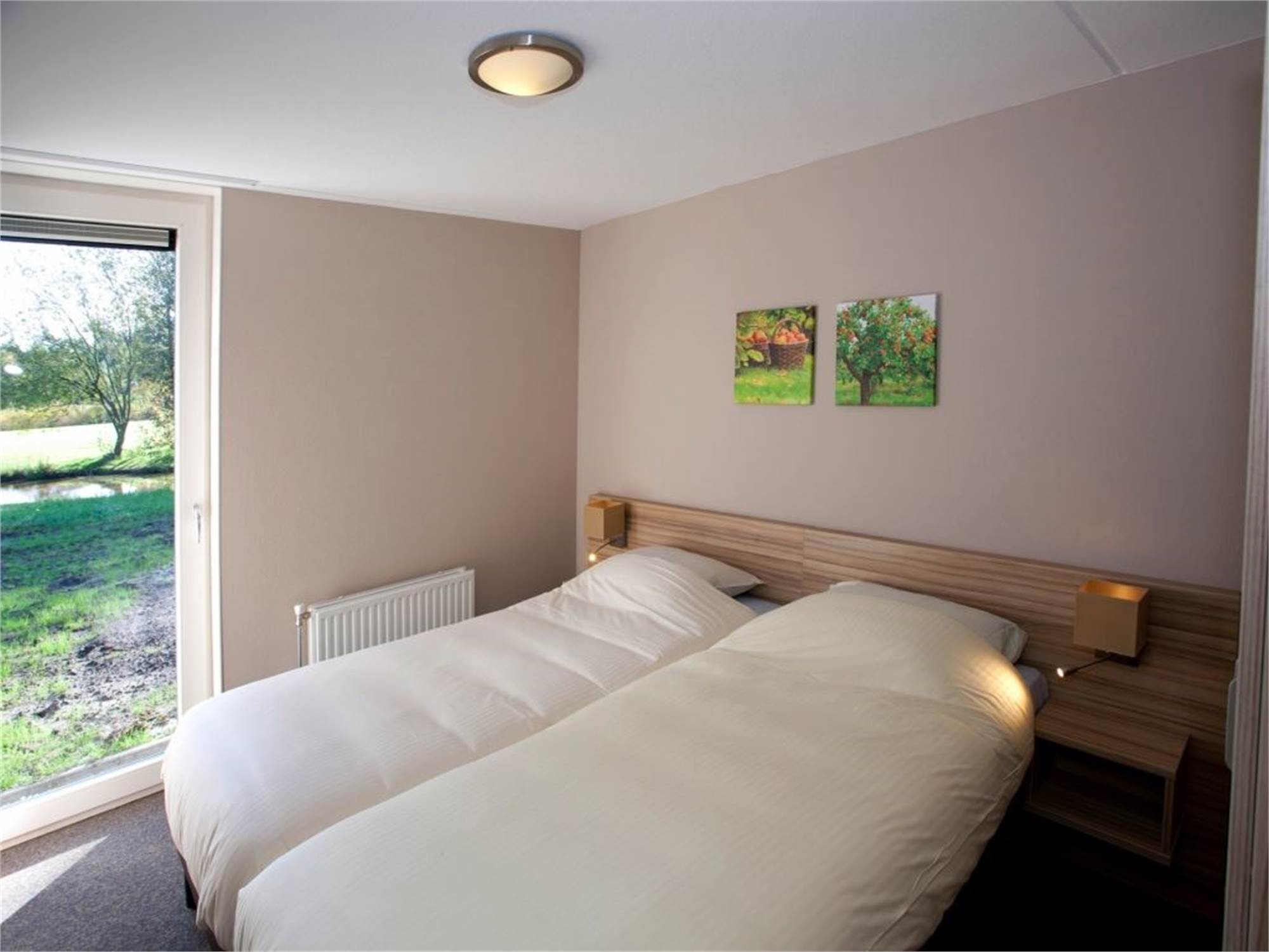 Bedroom with two single Auping box spring beds, soft mattress topper and TV