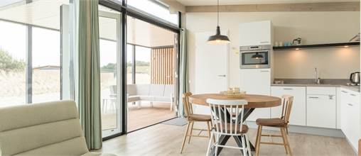 This detached villa can accommodate 4 people. The living room has a seating area, dining area and smart TV. The kitchen has a dishwasher, fridge with freezer compartment, combination microwave, coffee cup machine and kettle. There are 2 bedrooms with 2 single beds each. Both bedrooms have a private bathroom with toilet and shower. The lodge has a garden with a veranda and lounge set. The entire lodge has underfloor heating and free Wi-Fi.