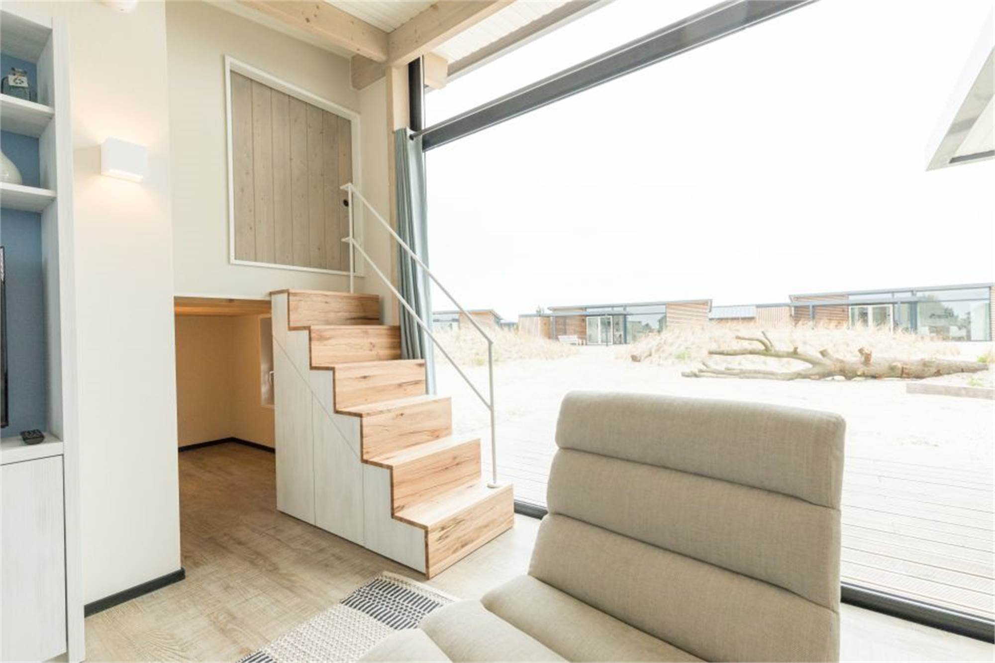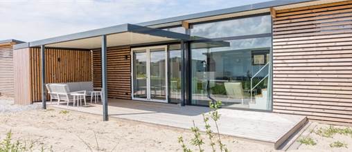 This detached lodge can accommodate 6 people. The living room has a seating area, dining area and smart TV. The kitchen has a dishwasher, fridge with freezer compartment, combination microwave, coffee cup machine and kettle. There are 2 bedrooms, 1 with 2 single beds and 1 bedroom with a bunk bed. You reach the sleeping loft with another two beds via a wooden staircase. The bathroom has a toilet, sink and walk-in shower. The lodge has a garden with a veranda and lounge set. The entire lodge has underfloor heating and free Wi-Fi.