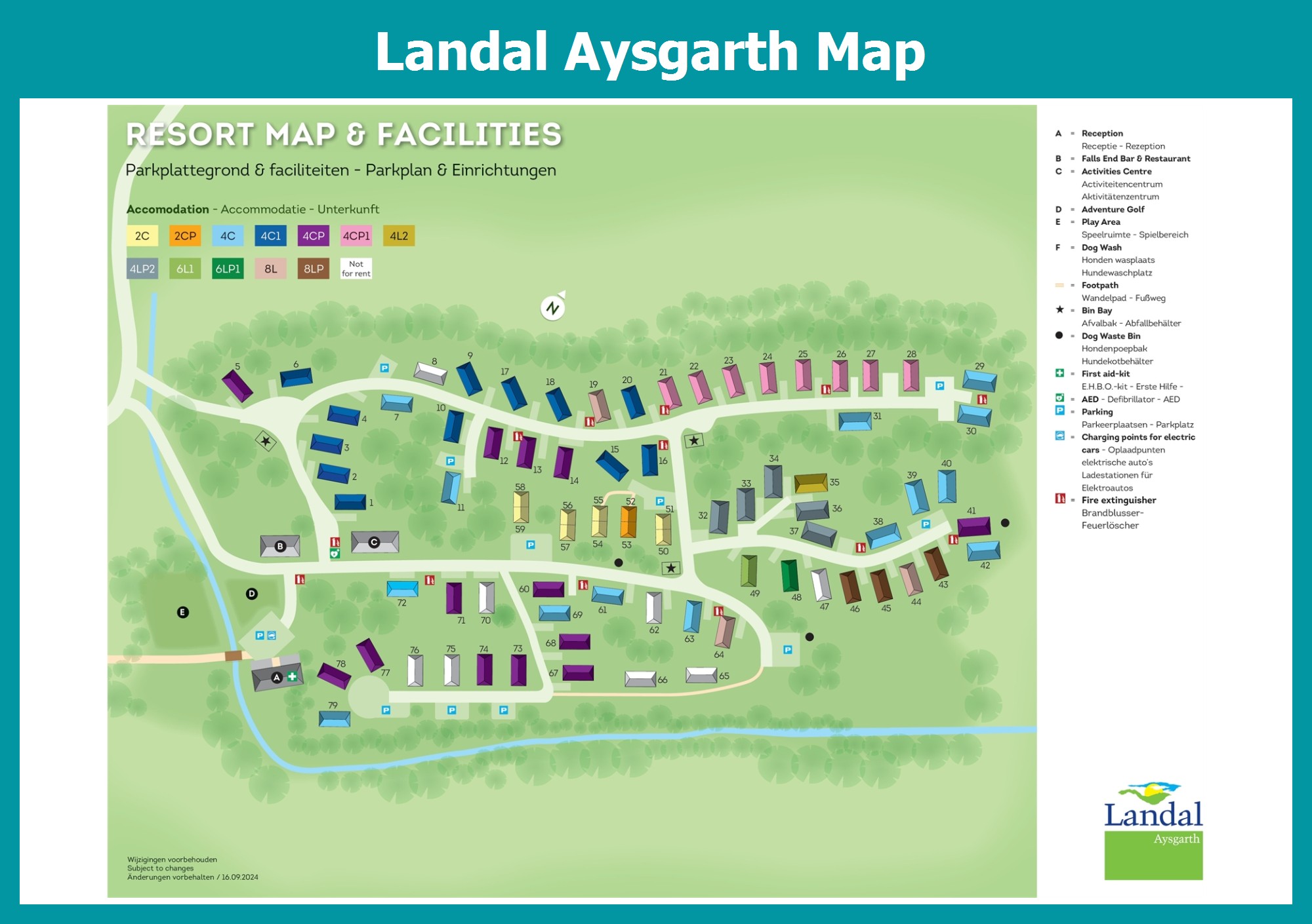 Up-to-date and comprehensive village map of Landal Aysgarth with all accommodations and facilities, also available as PDF.