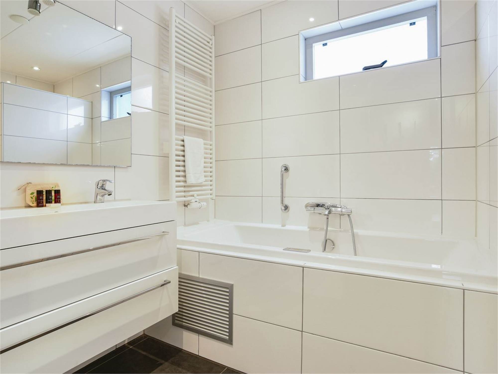Bathroom with jacuzzi bathtub, shower cubicle and double washbasin