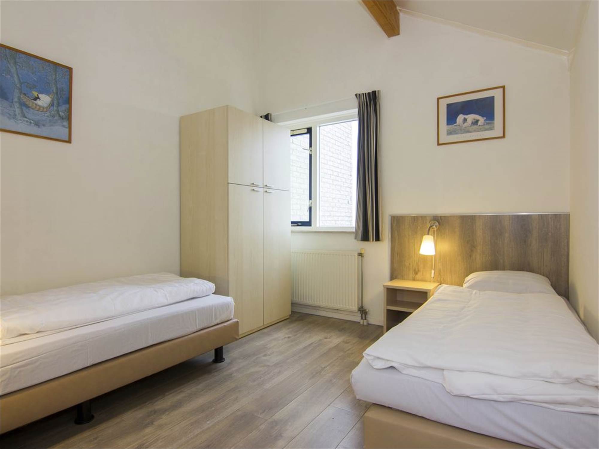 Two bedrooms with two single box spring beds
