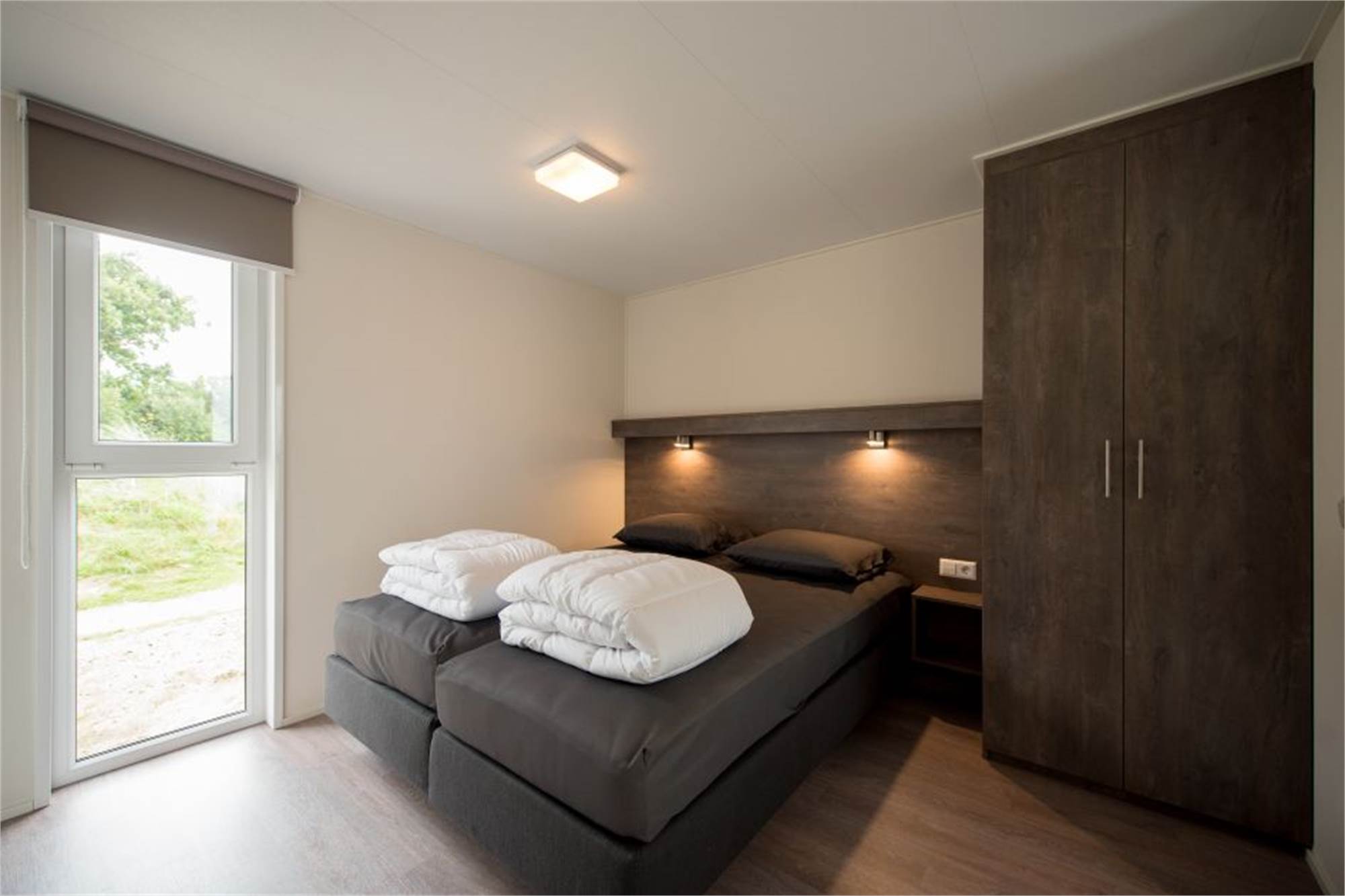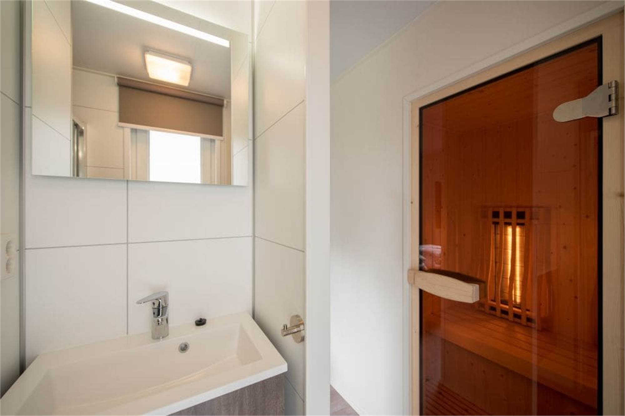 This new, detached chalet is suitable for 4 persons. The living room has a separate dining corner and in the kitchen you will find a microwave oven, dishwasher and coffee pad machine, among others. In addition, there are 2 bedrooms, each with 2 single box spring beds and there are 2 bathrooms with shower. In addition, there is an infrared sauna, a washing machine and a separate toilet. Furthermore, the chalet comes with a furnished veranda and use of Wi-Fi is free of charge.