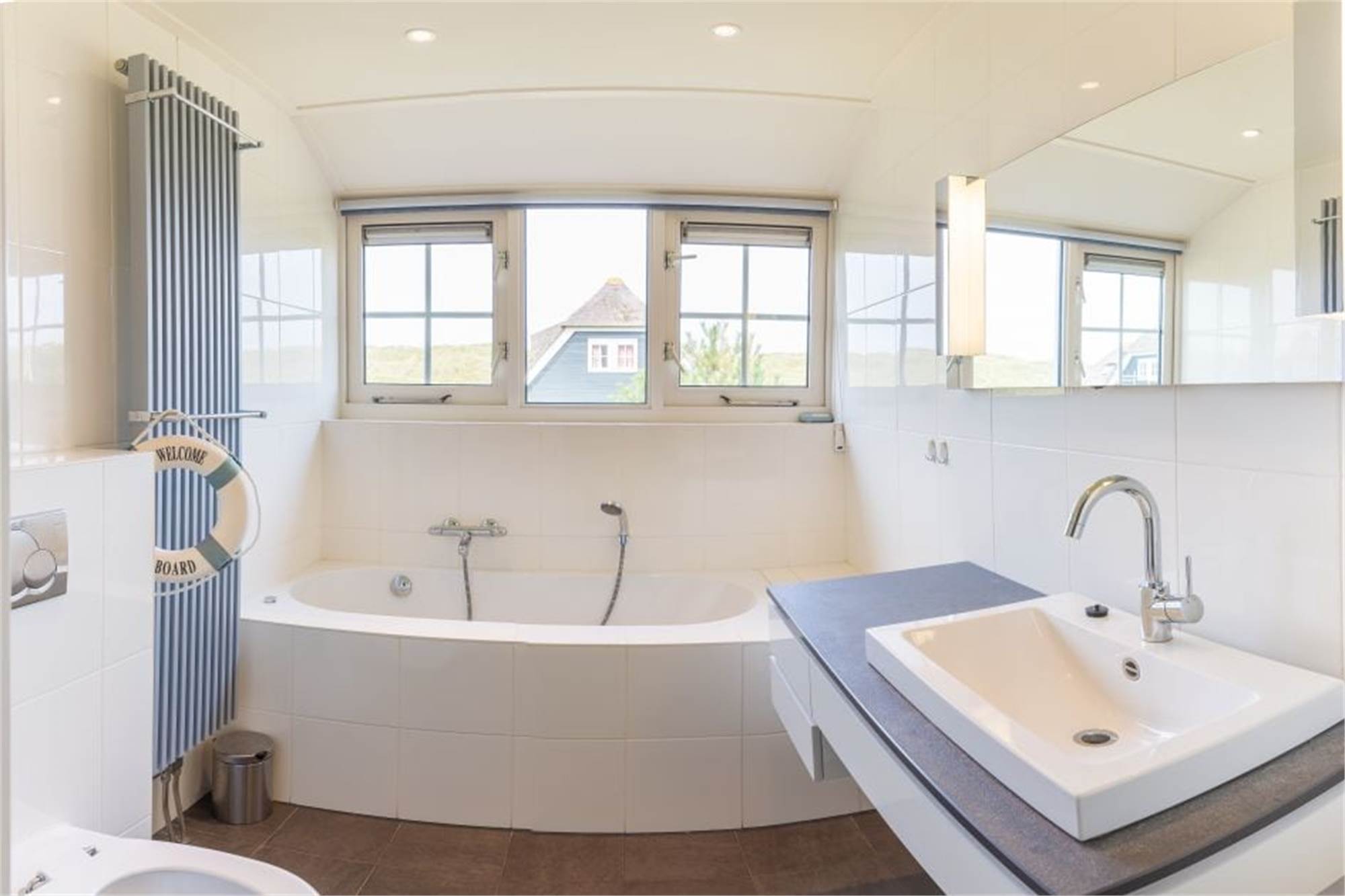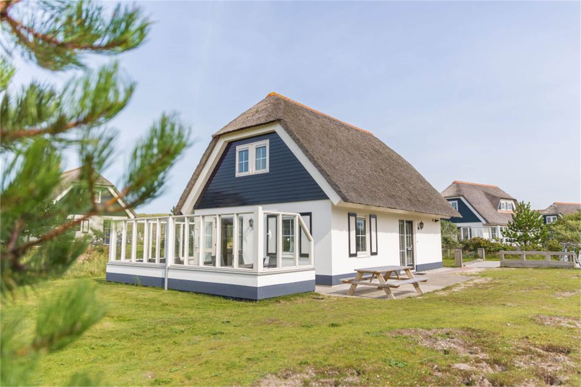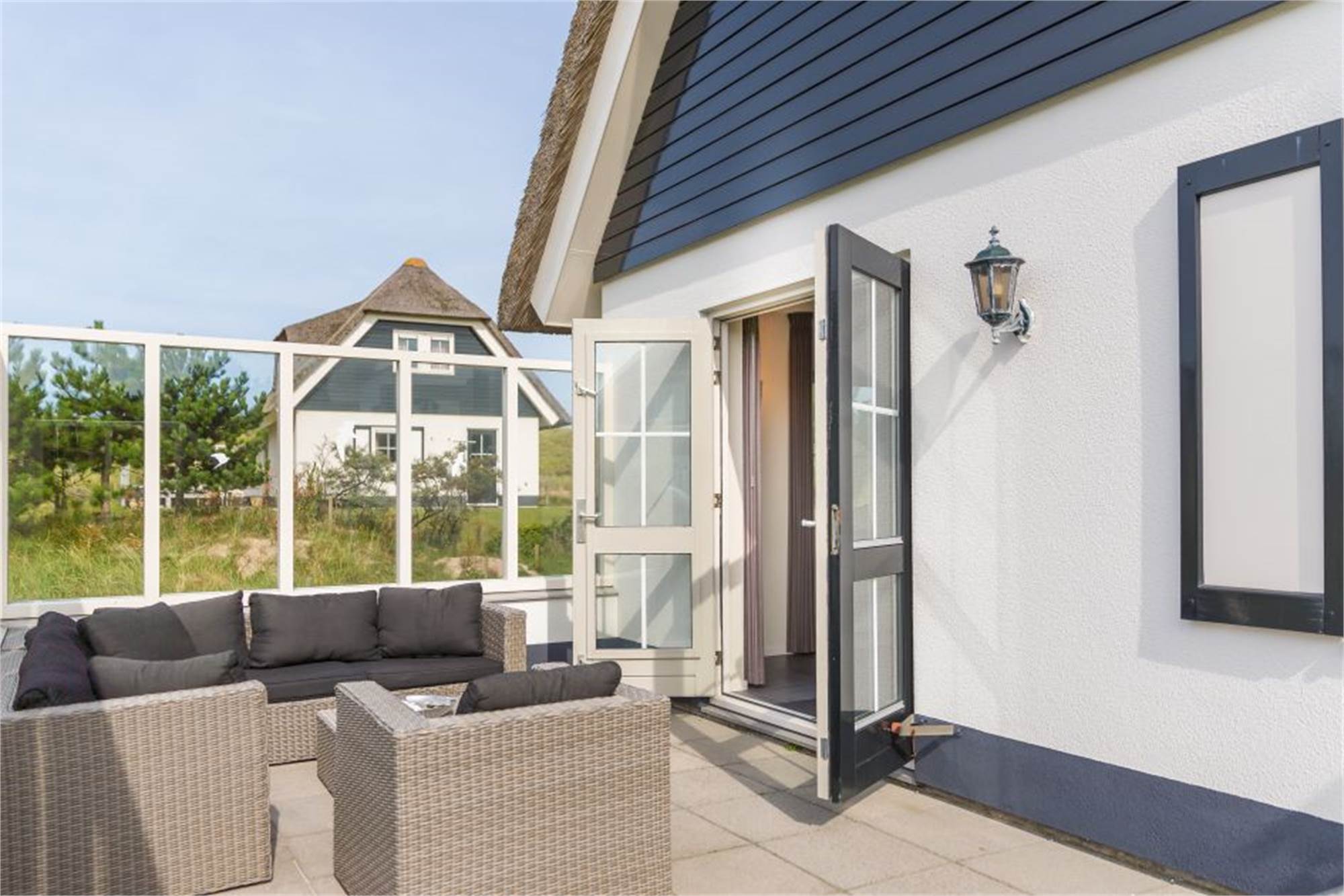 Very luxurious detached thatched bungalow. Living room equipped with flat screen TV and DVD player. The kitchen is luxuriously equipped with microwave oven and a dishwasher. The master bedroom has a flat screen TV. The downstairs bathroom has a bathtub. The bungalow also has a sauna, washing machine, tumble dryer and wireless Internet. For the younger children this bungalow has a fixed cot with mattress, a Tripp Trapp highchair and stair gates upstairs and downstairs. For the older children there is a Wii computer. The terrace has a luxurious terrace screen and is equipped with a luxurious lounge set and garden furniture.