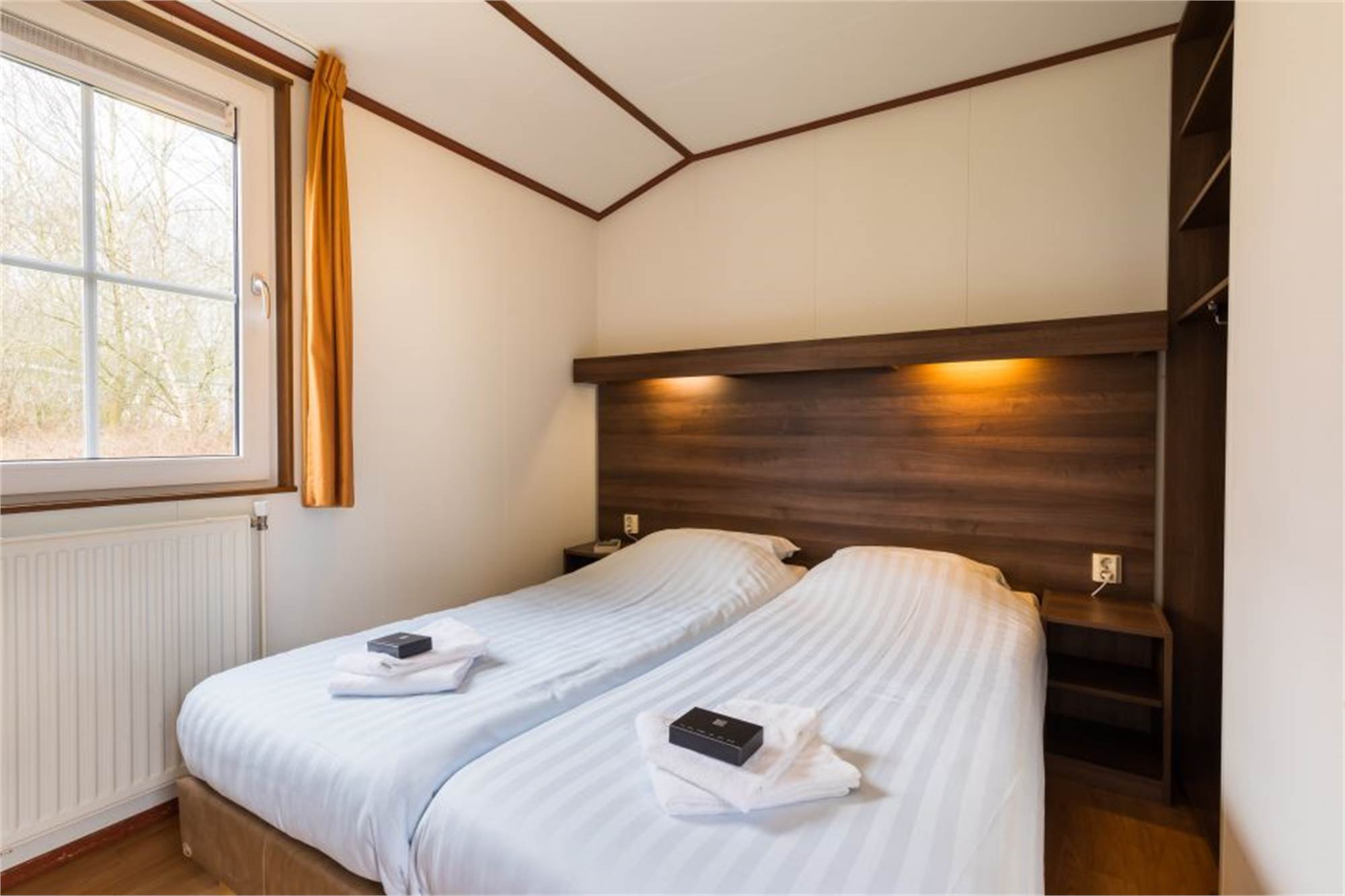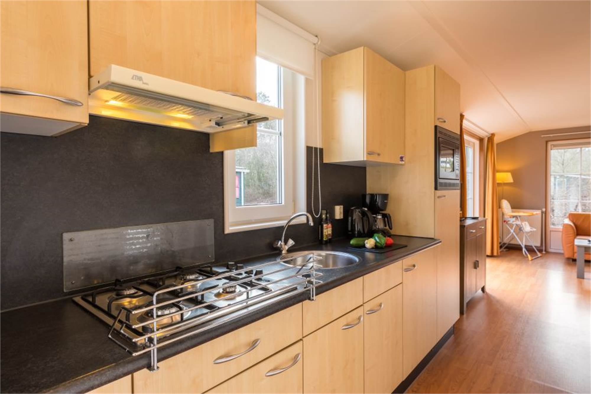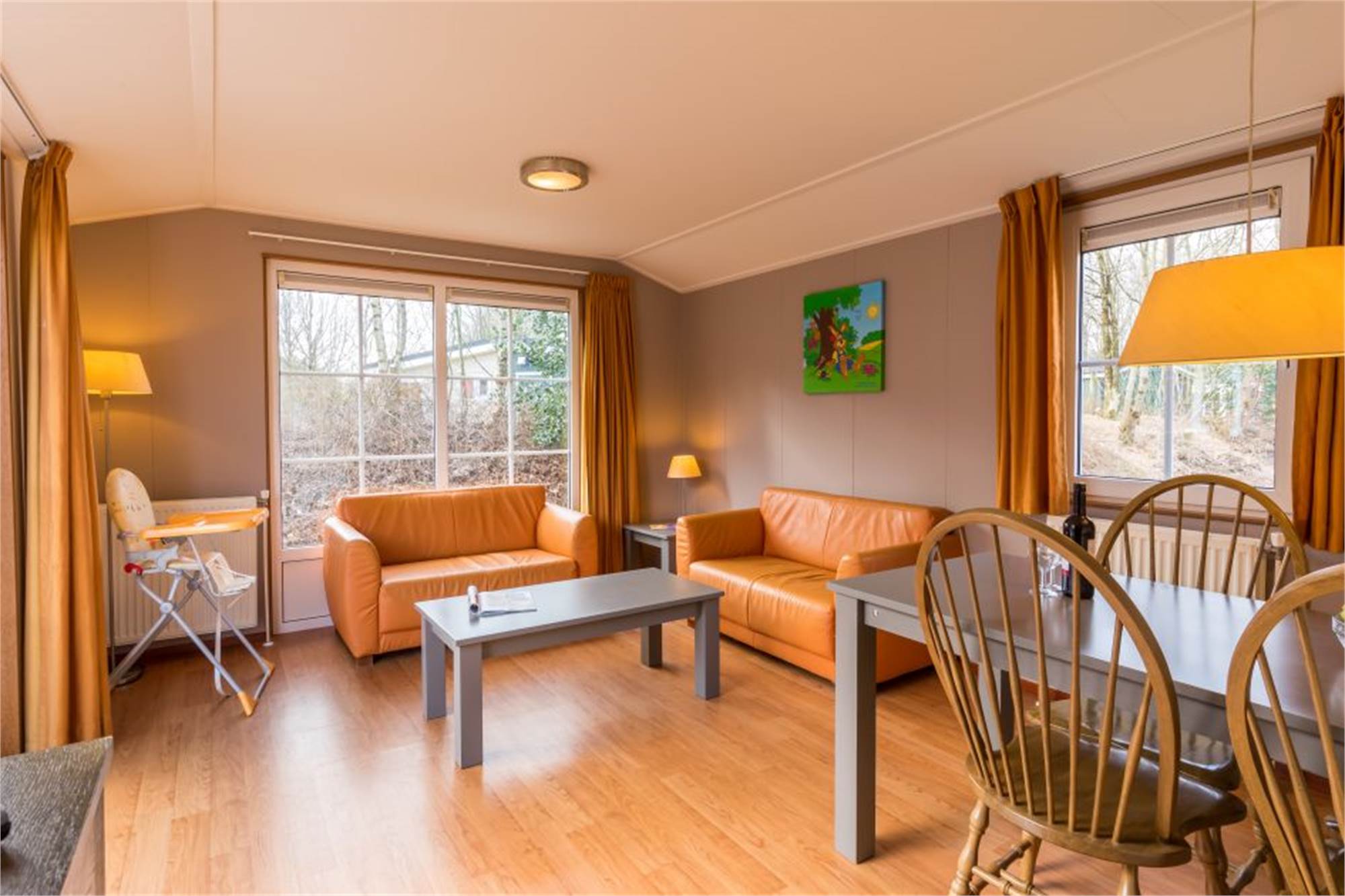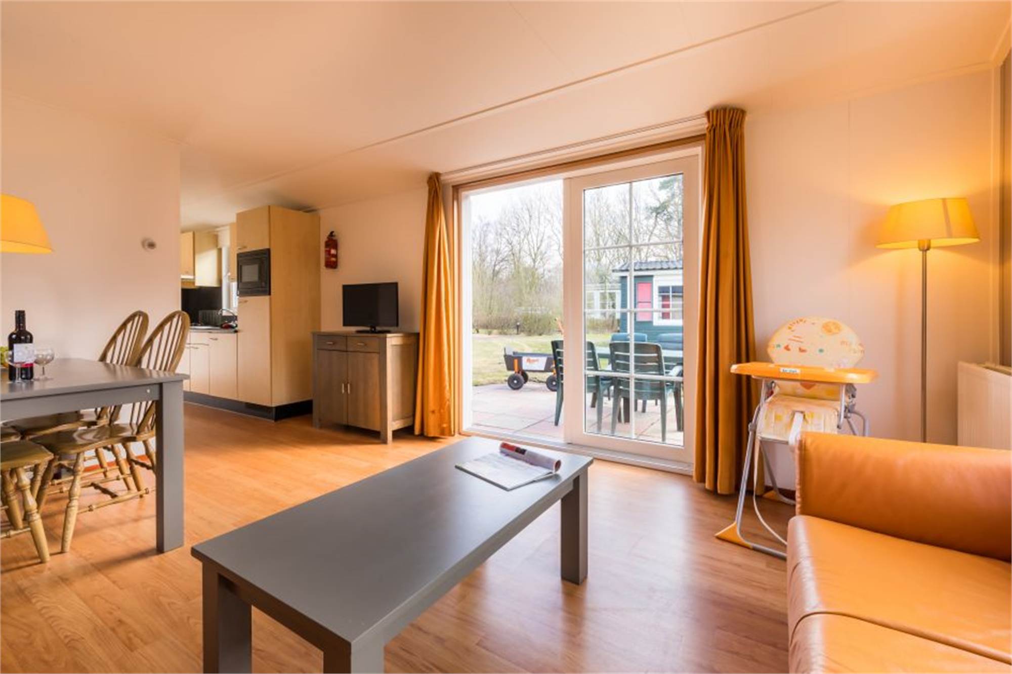This child-friendly, detached chalet is suitable for 4 adults and 1 child. The living room has a separate dining area and in the kitchen you will find a combination microwave and coffee machine among other things. In addition, there are 2 bedrooms with 2 single box spring beds and a bathroom with shower and a separate toilet. The chalet is also equipped with a cot and high chair and the wall sockets are shielded. In addition, there is a furnished terrace and free Wi-Fi is available.