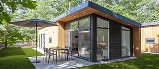 This is a brand new lodge type! A new lodge will of course include a new garden. The garden is not yet fully grown. If you would still like lounging on the lawn, or playing among the trees, there is plenty of space at the swimming pond!