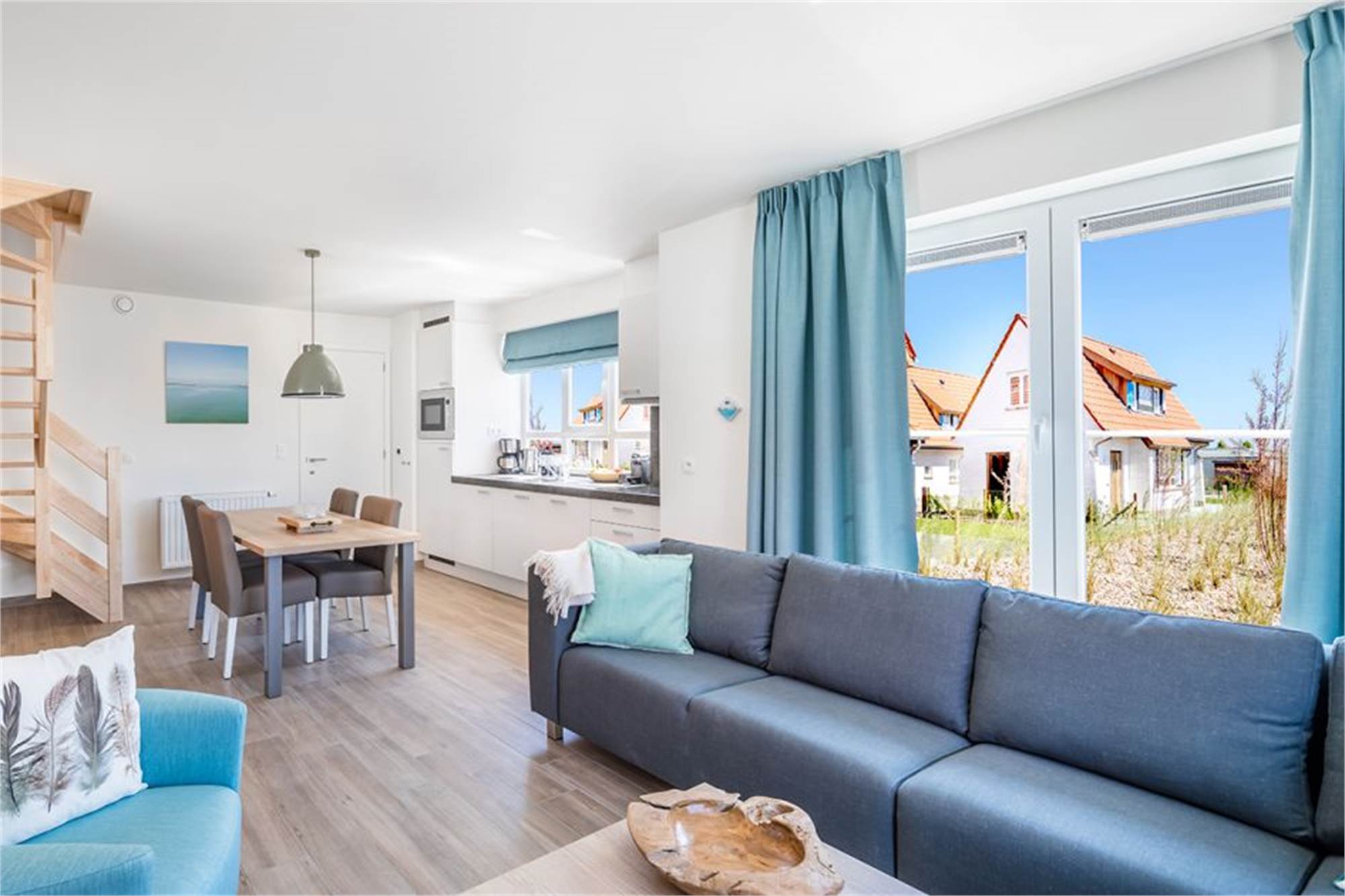 This luxurious detached villa is situated on the promenade and can accommodate 4 people. The kitchen, among others, comes equipped with a microwave, Coffee Maker, dishwasher and fridge freezer. From the living room with cosy seating area you reach the terrace with garden furniture and sun loungers. On the first floor there are two bedrooms with single box spring beds, a television and two bathrooms with showers. Furthermore, this type has two separate toilets and a washing machine and dryer. This villa has parking for one car and an ideal location near the beach and a playground. Moreover, you can make use of the free Wi-Fi.