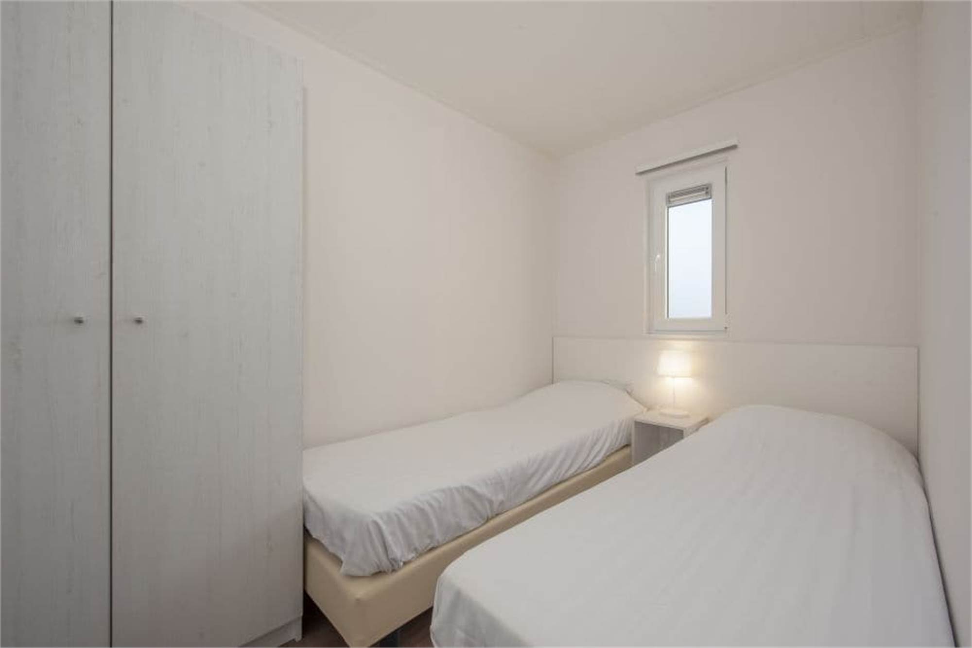 This detached lodge is suited for 6 persons. The kitchen is equipped with a dishwasher, microwave oven and refrigerator with freezer. The living room has a smart TV. There are three bedrooms, each with two single beds. There is one bathroom with a shower (cabin). There is parking space parking for two cars available near the lodge and garden furniture is present. You can make free use of the Wi-Fi.