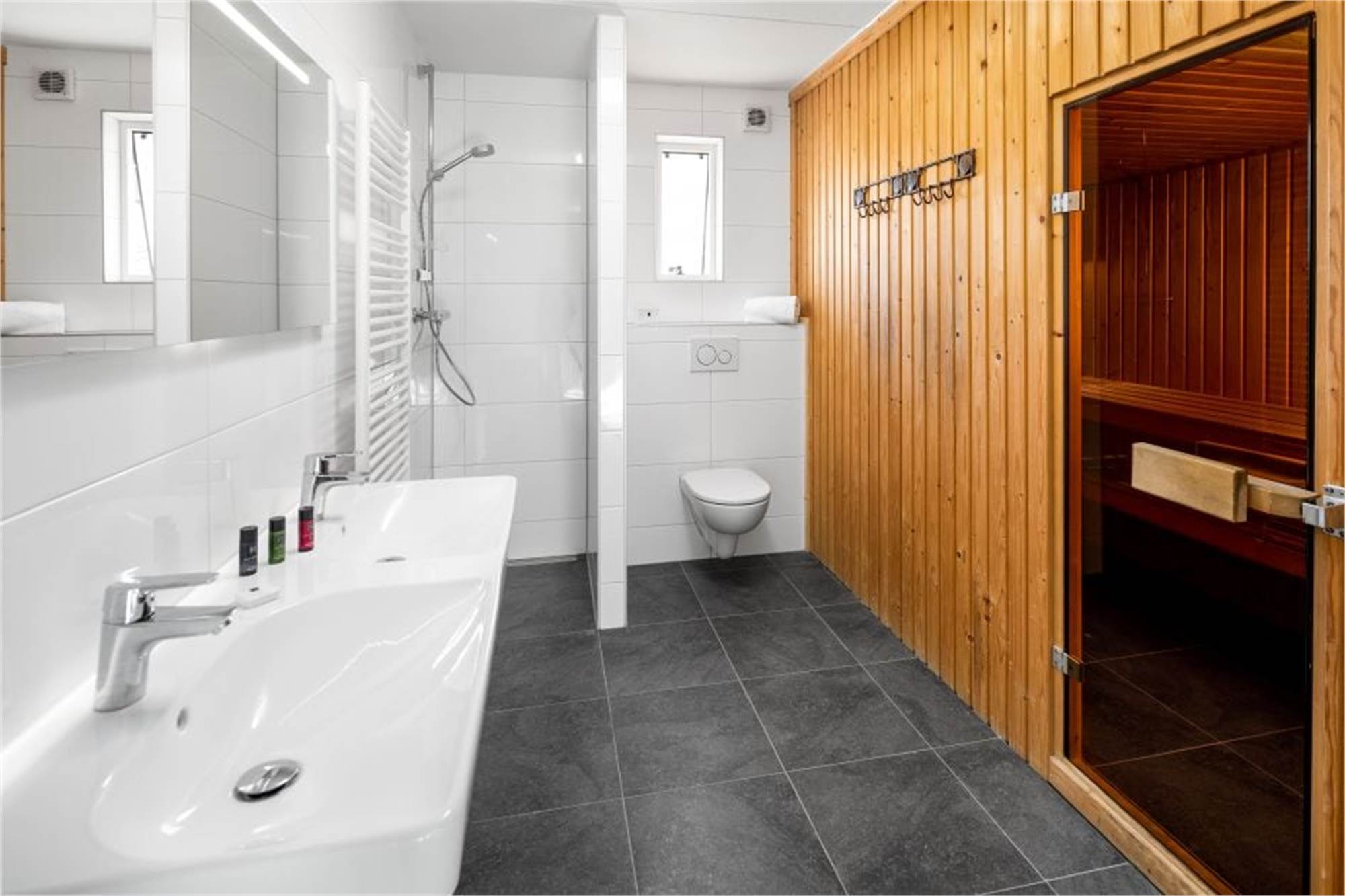 This detached villa, suitable for 16 persons, is fully equipped. The ground floor offers a large living with smart TV and a luxury kitchen including a dishwasher, 2 fridges and a freezer and a microwave oven. Also there are 2 bedrooms, a bathroom with sauna and shower and a separate toilet. Upstairs there are another 6 bedrooms, a separate toilet and 2 bathrooms.