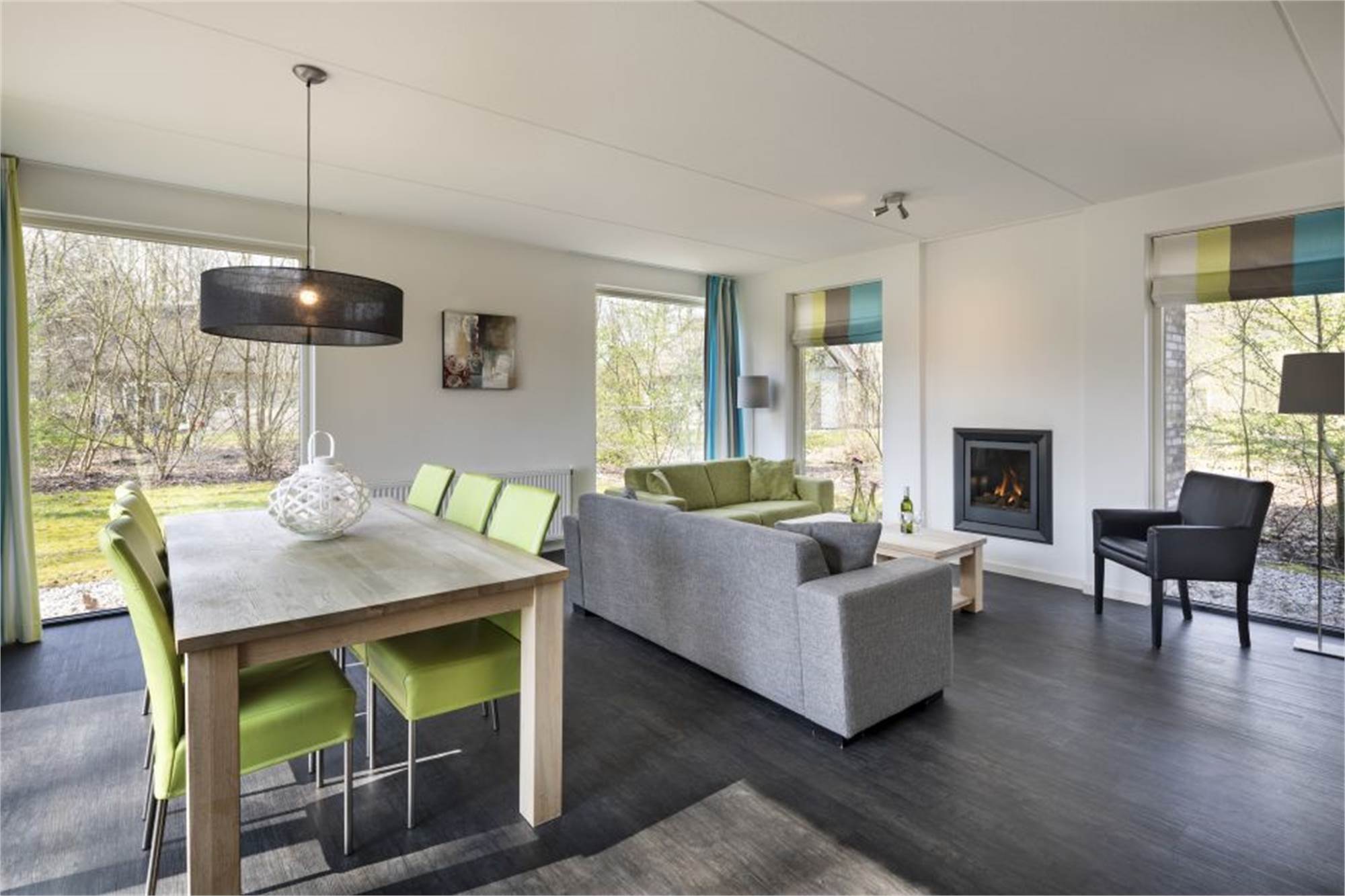 This detached villa can accommodate 4 people. There is a living room with a fireplace, and the kitchen is equipped with a dishwasher, a combination microwave, a fridge and a filter coffee machine. There are also 2 bedrooms, both with 2 single box spring beds. The bathroom upstairs has a toilet, a bathtub and there is a separate shower. There is a another toilet downstairs. Outside, there is a terrace with garden furniture and there is parking at the holiday home. You can use free Wi-Fi.