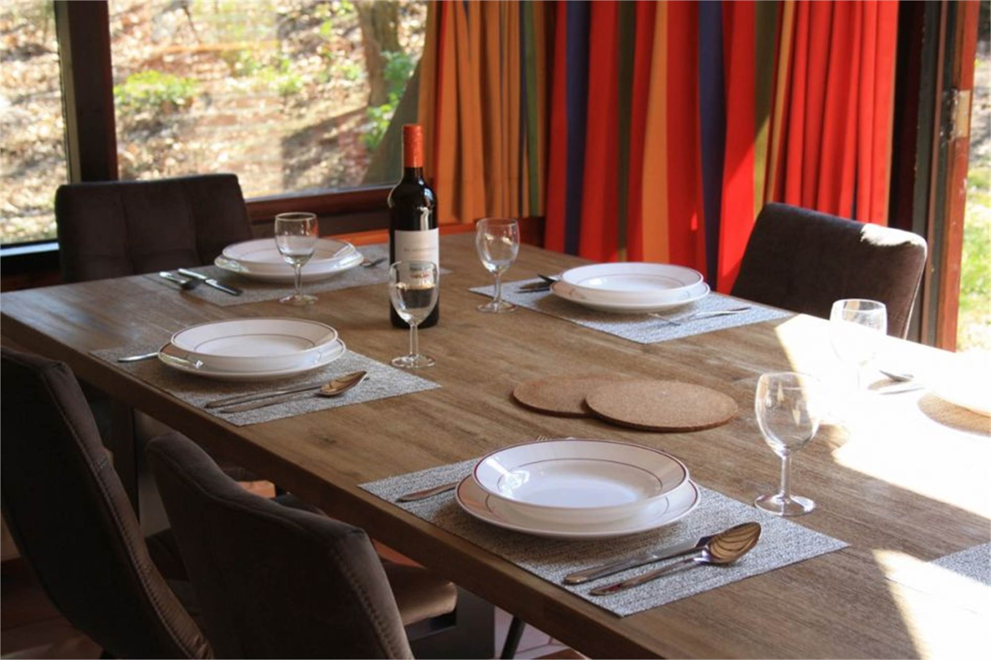 Layout: living room with a fireplace and flat screen TV. Kitchen with fridge freezer, coffee maker and microwave. Two bedrooms, both with two twin beds. Heated bathroom floors and toilet. Charging point for e-bike. Terrace with fireplace and situated on the edge of the forest.