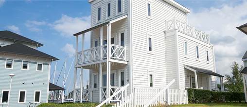 Detached villa for 8 persons. Three floors. On the ground floor you can find a large living room and a luxury kitchen. On the first floor there are 3 bedrooms and a bathroom with bath. On the upper floor there is a bedroom with private bathroom and sauna.