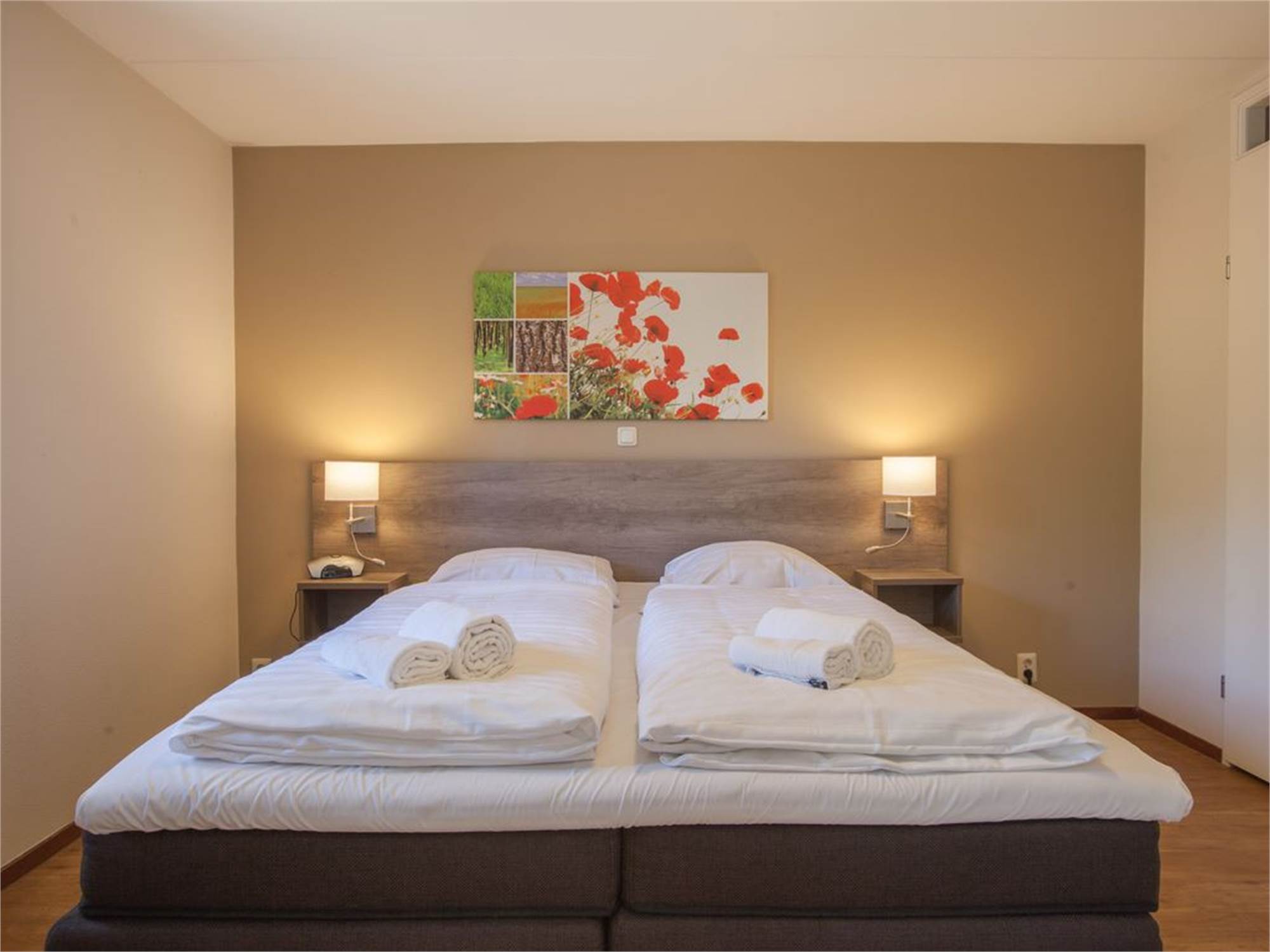 Bedroom with two single Auping box spring beds, 2 person soft mattress topper and flatscreen TV