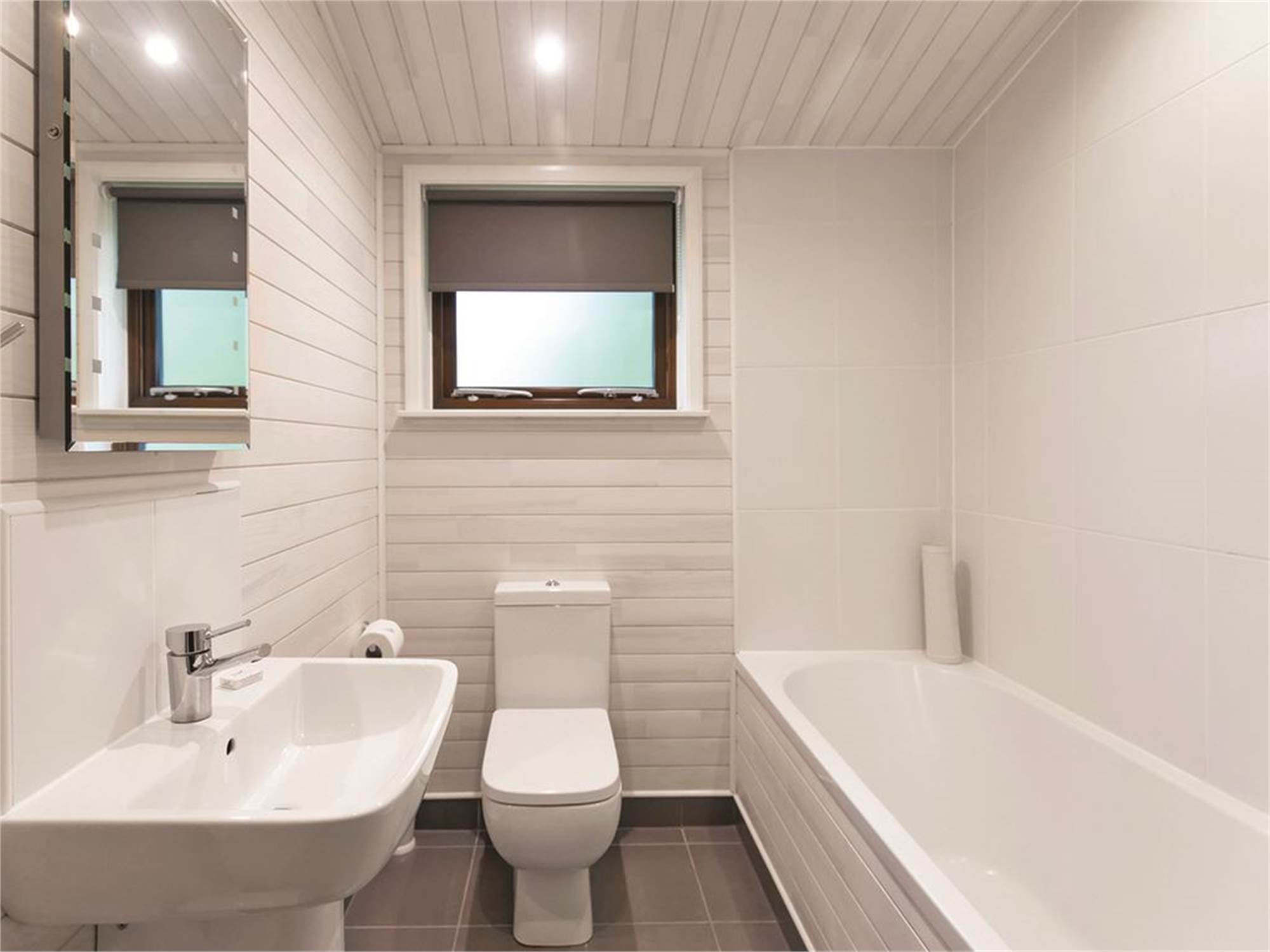 Bathroom with shower cubicle, washbasin and toilet