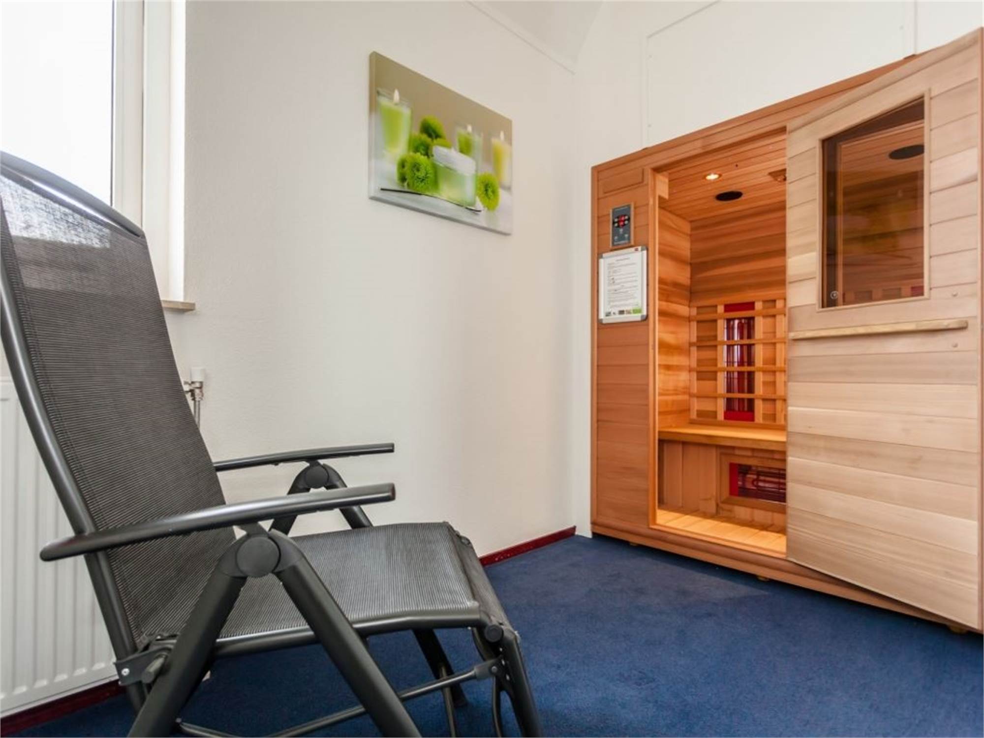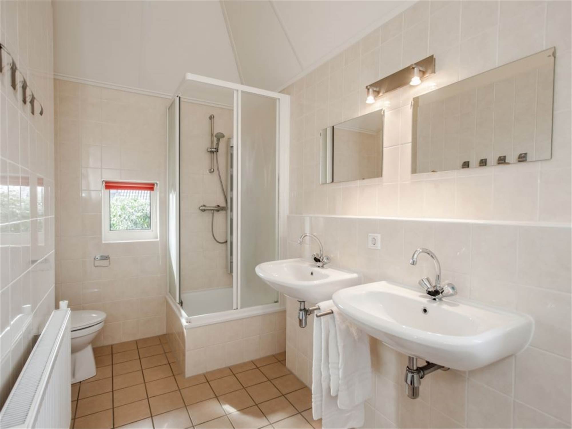 Bathroom with sun shower, toilet and double washbasin on the first floor