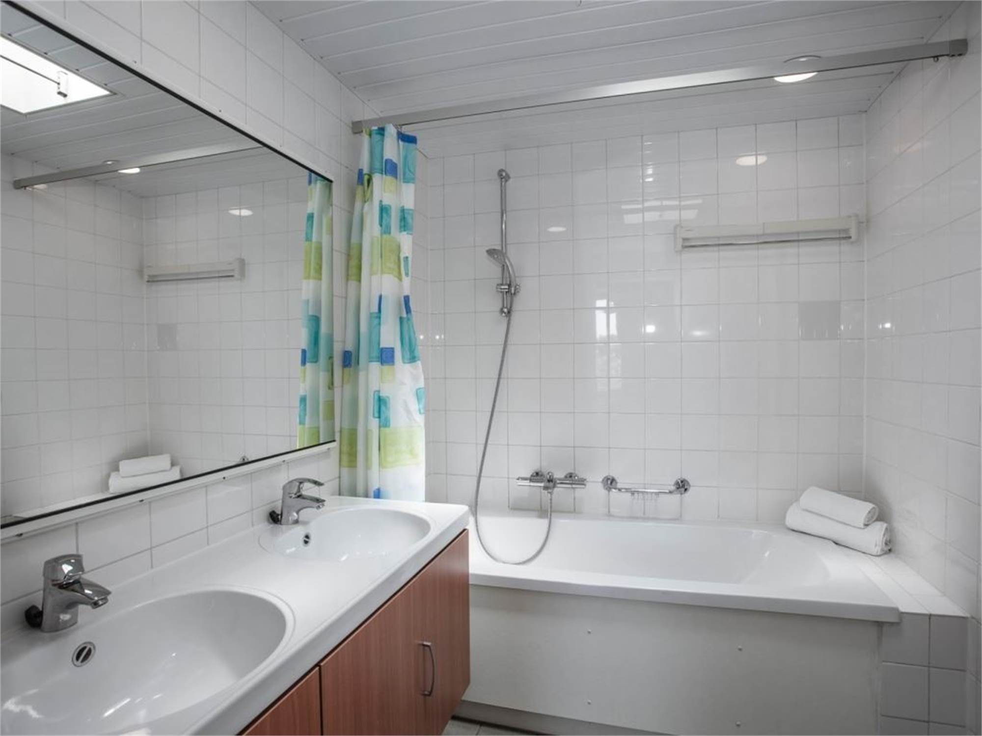 Bathroom with bathtub, double washbasin and toilet