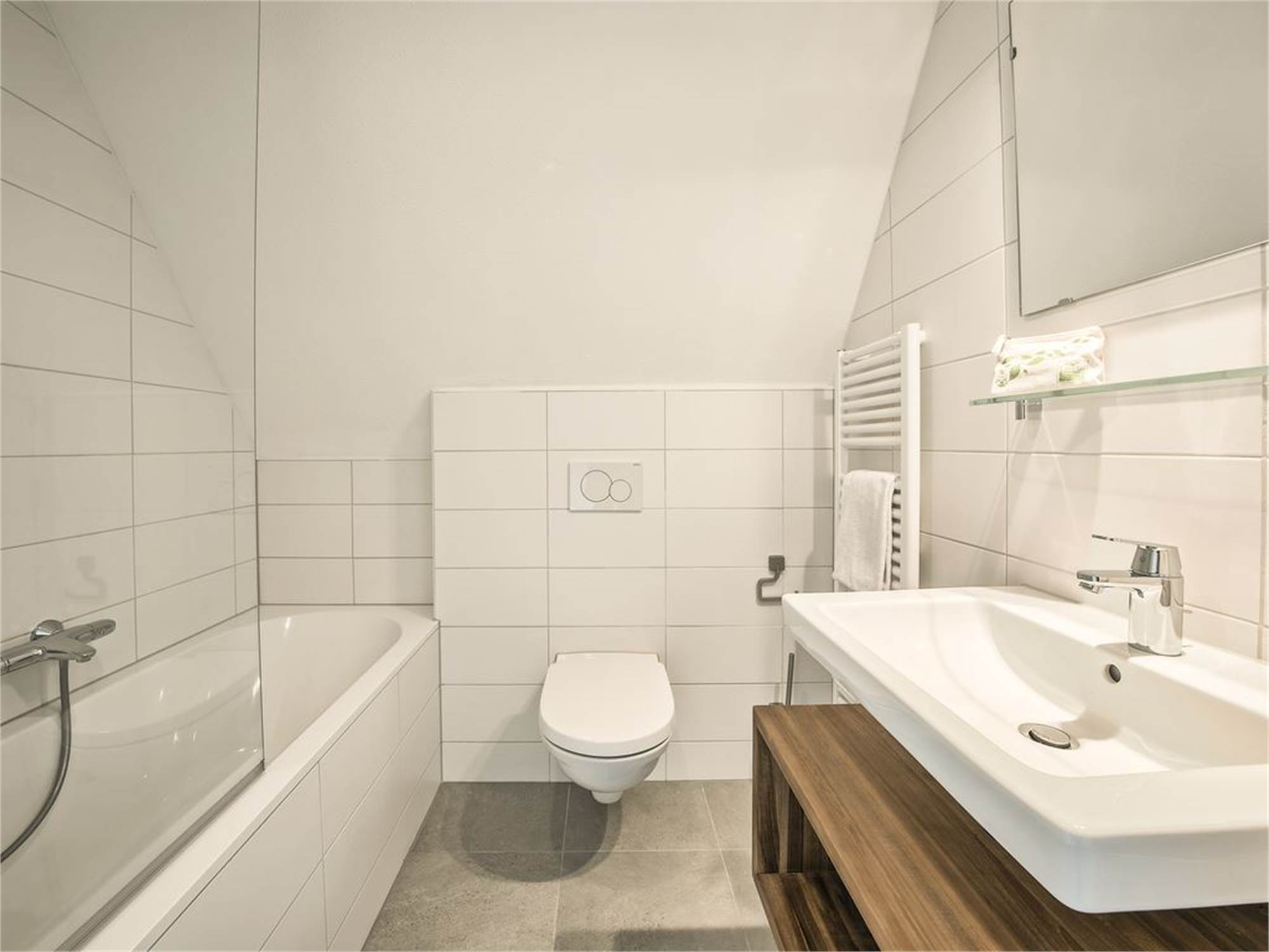Bathroom with bathtub, washbasin and toilet on the first floor