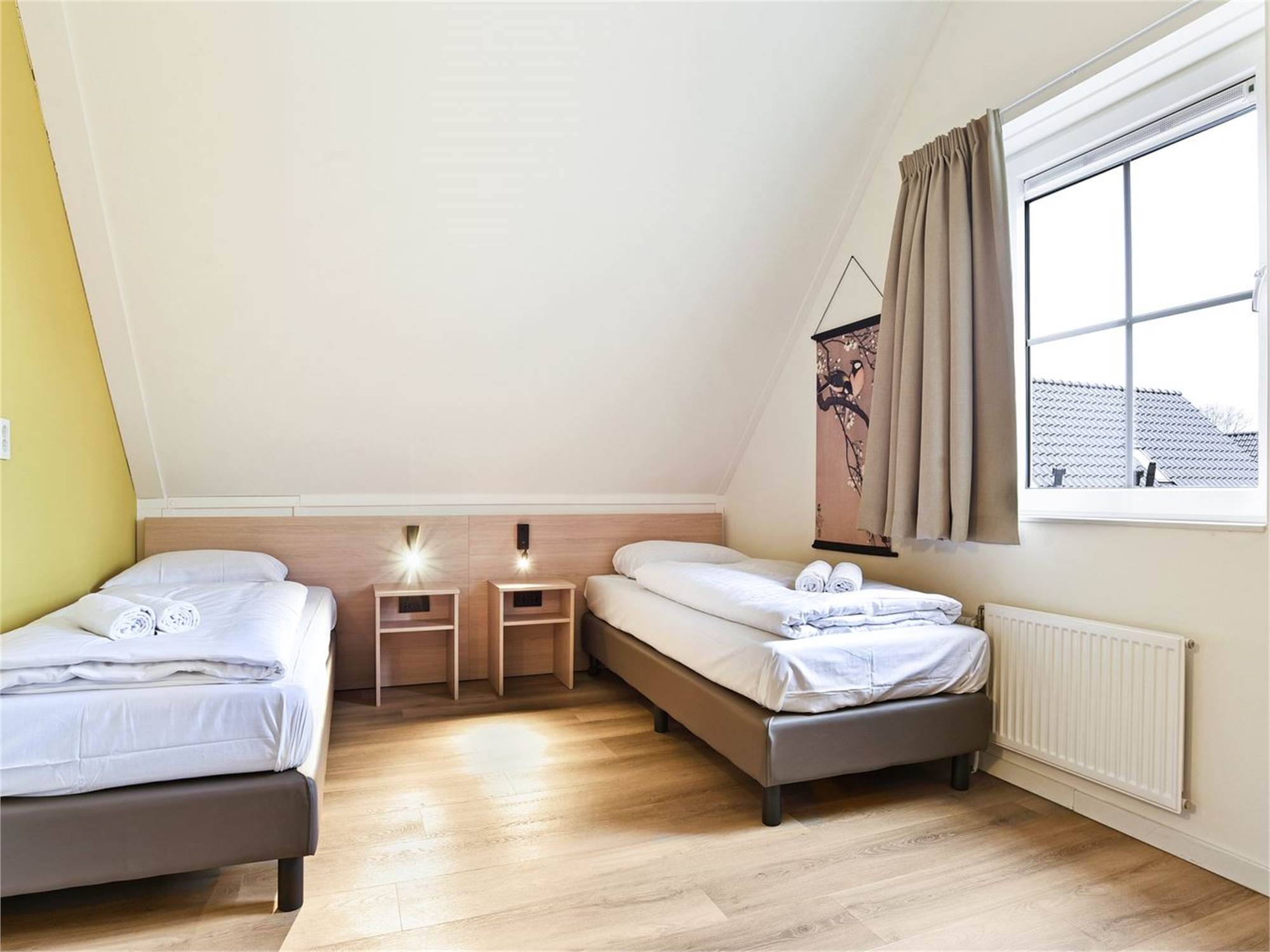 Bedroom with a 2-person box spring bed and 2-person soft mattress topper