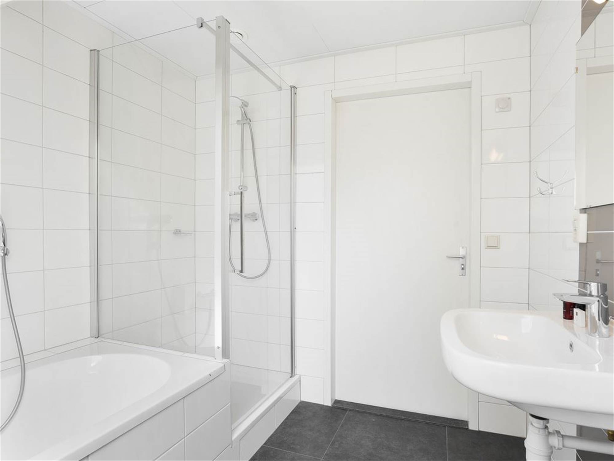 Bathroom with shower and washbasin