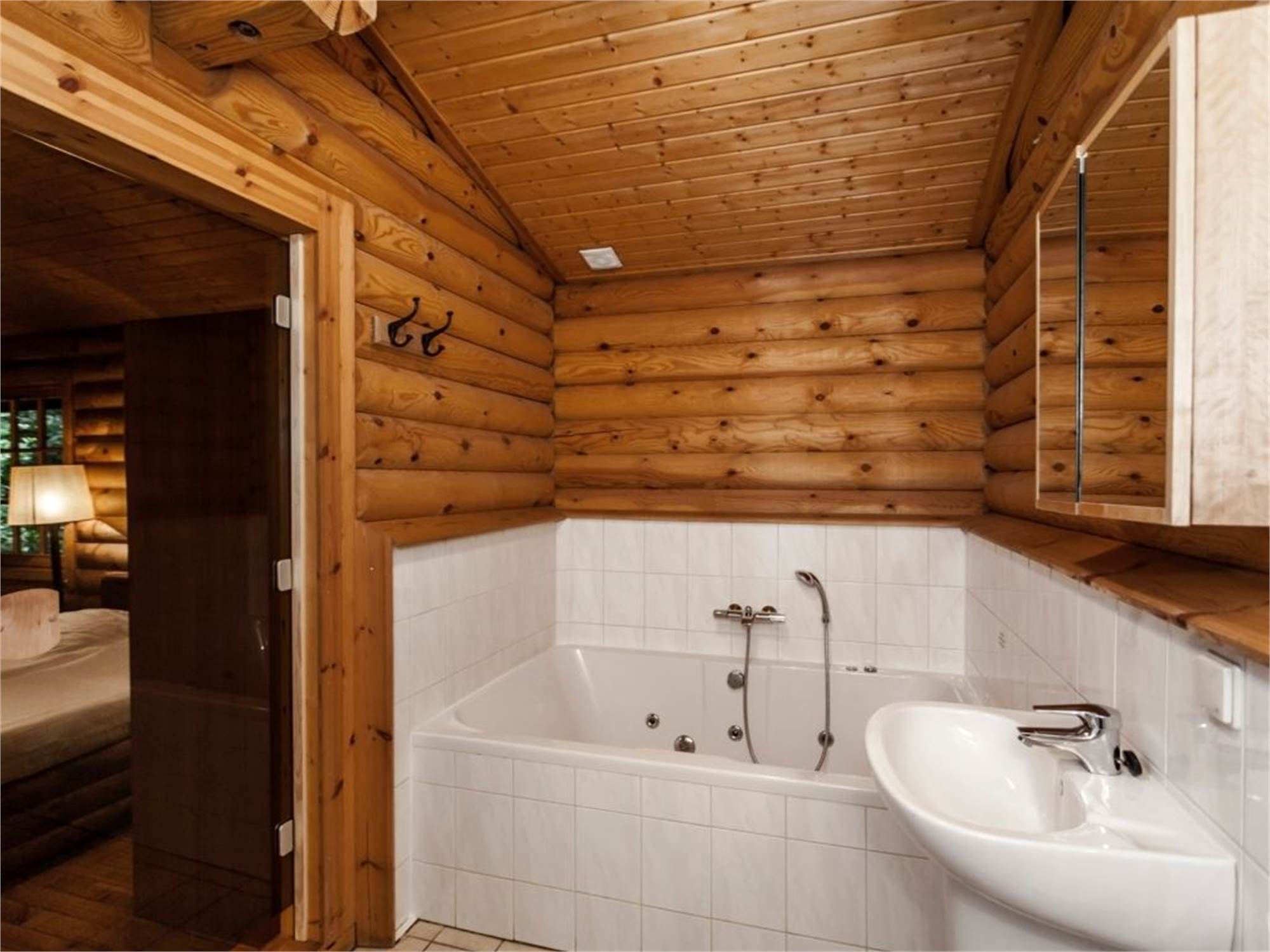 Bathroom with jacuzzi bathtub, steam shower, washbasin and toilet