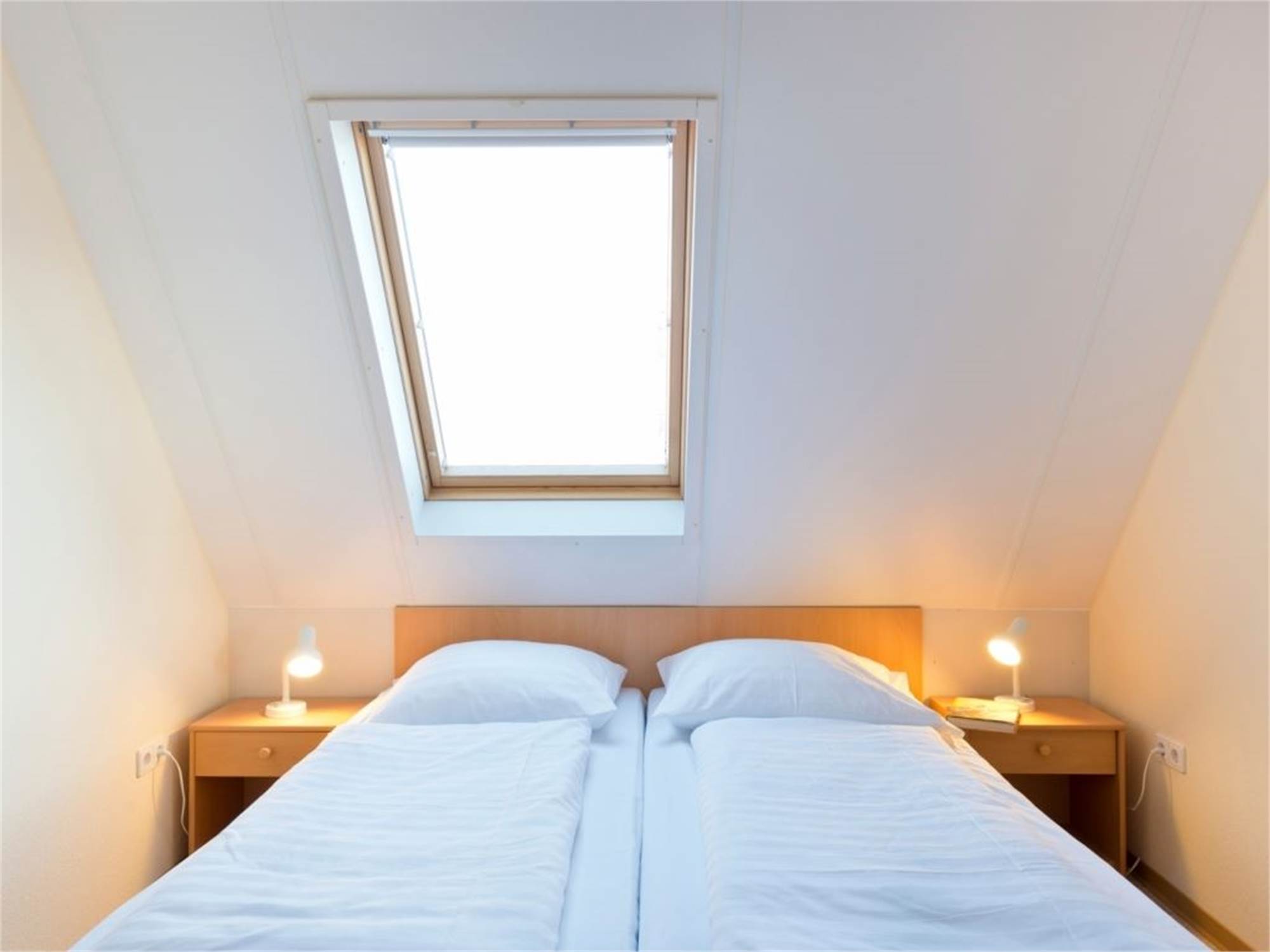 Two bedrooms with two single beds on the first floor