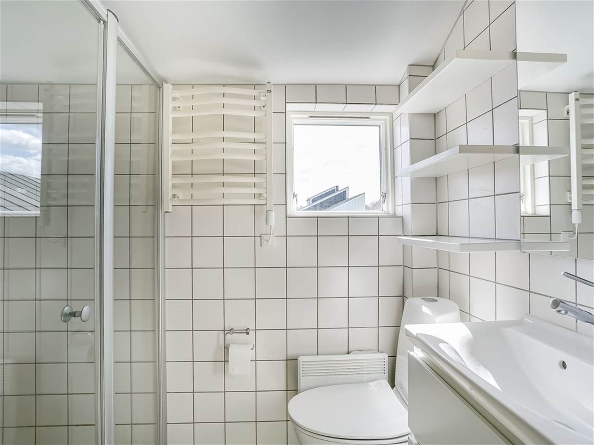 Bathroom with shower, washbasin and toilet