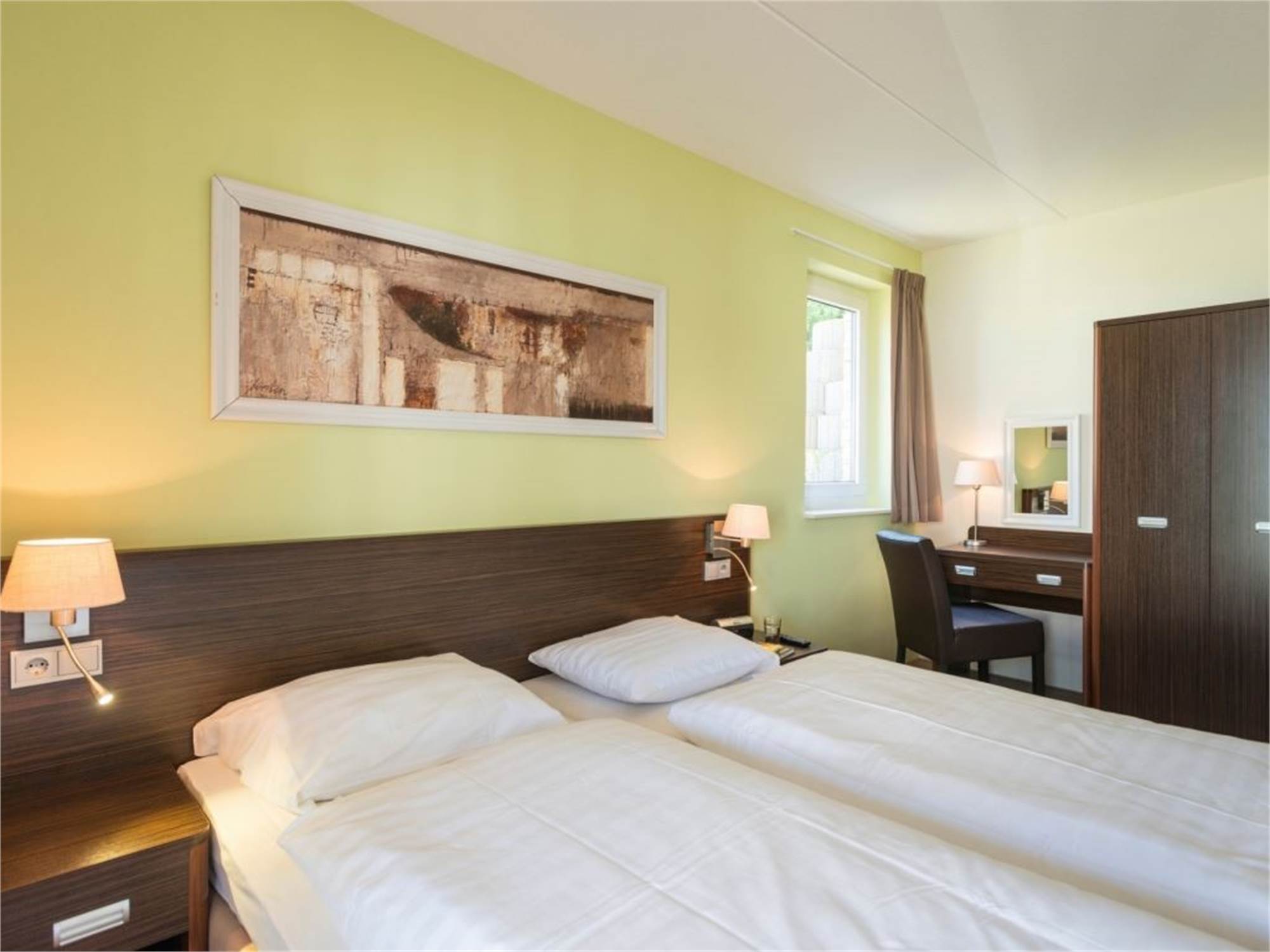Two bedrooms with two single box spring beds