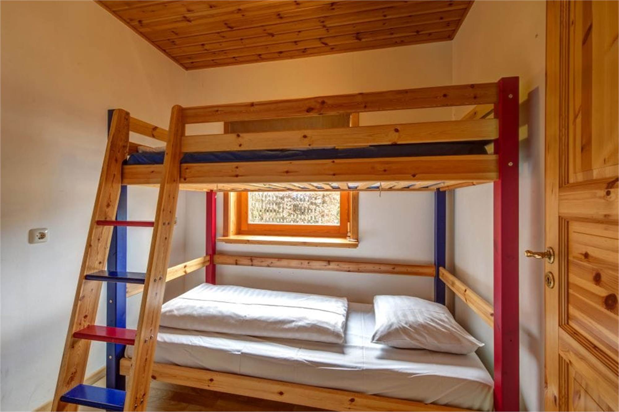 First floor: four bedrooms, of which two feature two single beds each, and two feature three single beds. Bathroom with shower or shower cabin, washbasin and toilet. Storage room.