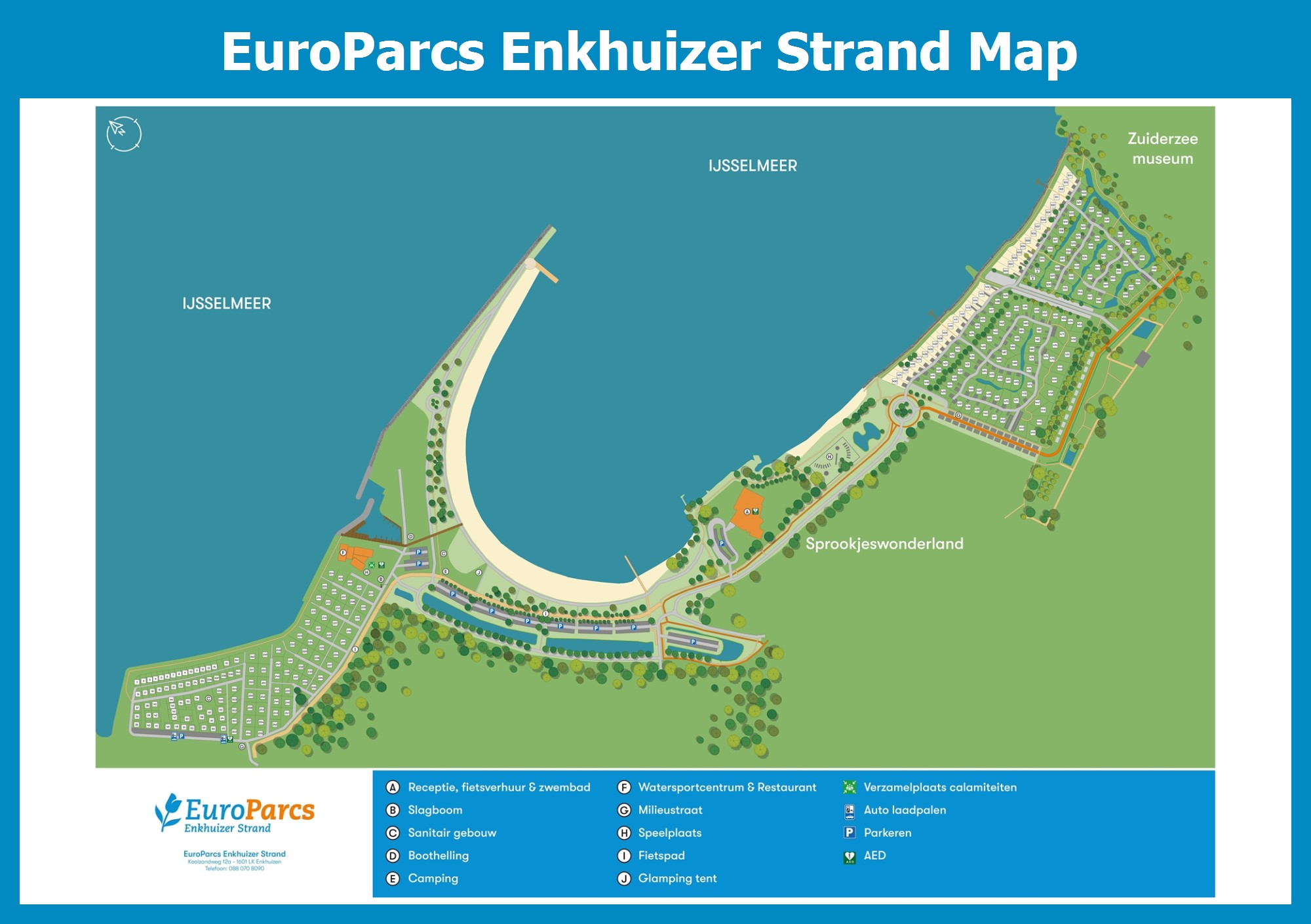 Up-to-date and comprehensive village map of EuroParcs Enkhuizer Strand with all accommodations and facilities, also available as PDF.