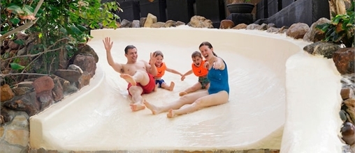 It is not the longest slide in Aqua Mundo, but it is one of the most enjoyable. On your knees, superfast or all together in a row?