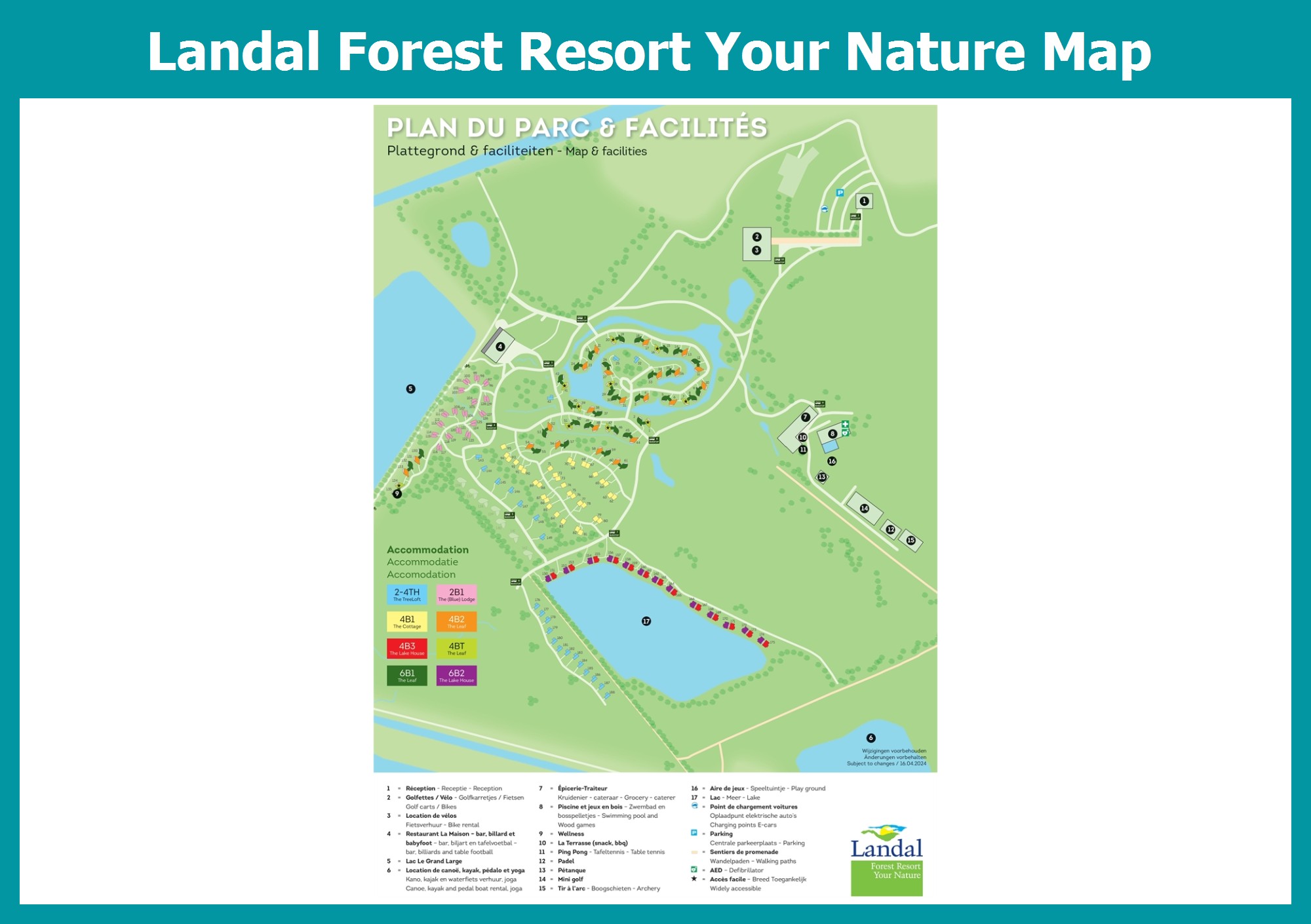 Up-to-date and comprehensive village map of Landal Forest Resort Your Nature with all accommodations and facilities, also available as PDF.
