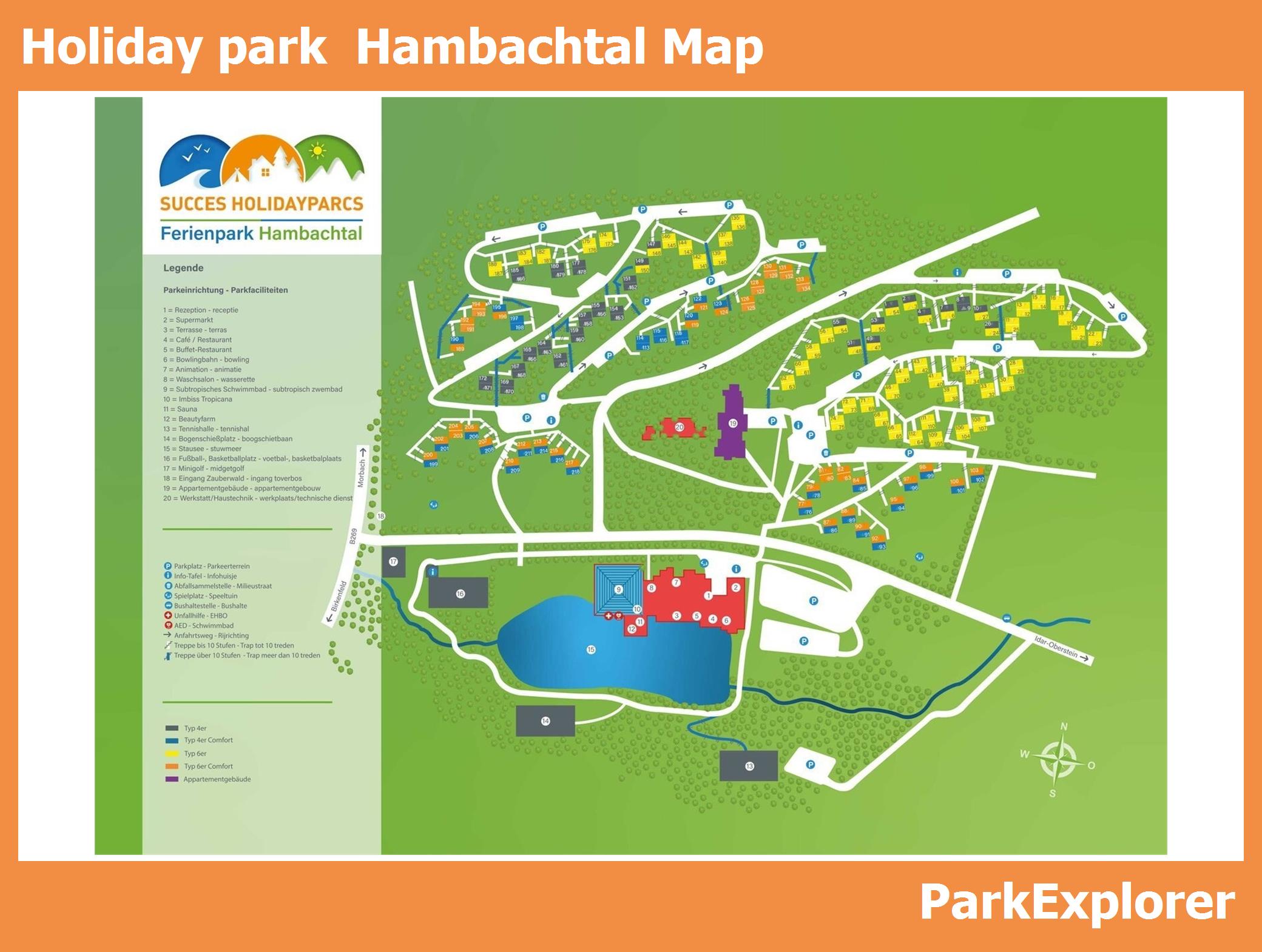 🇩🇪 Oberhambach, Germany Holiday park Hambachtal is beautifully situated, surrounded by forests and on the edge of a small lake, in the middle of the Hunsrück. It has a subtropical swimming paradise with, among other things, a slide, white water channel and a bubble bath, and is one of the most beautiful indoor swimming pools of Germany. The park has many facilities in the central building for young and old.