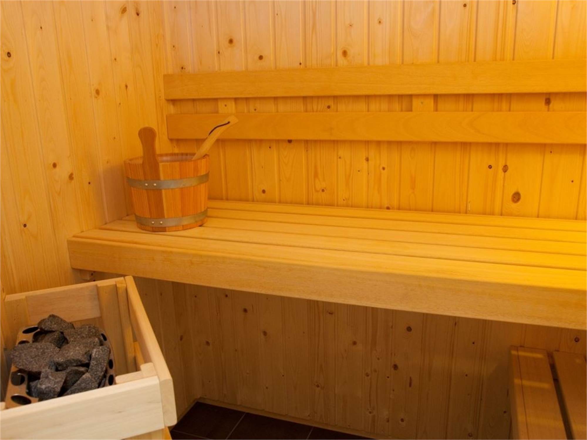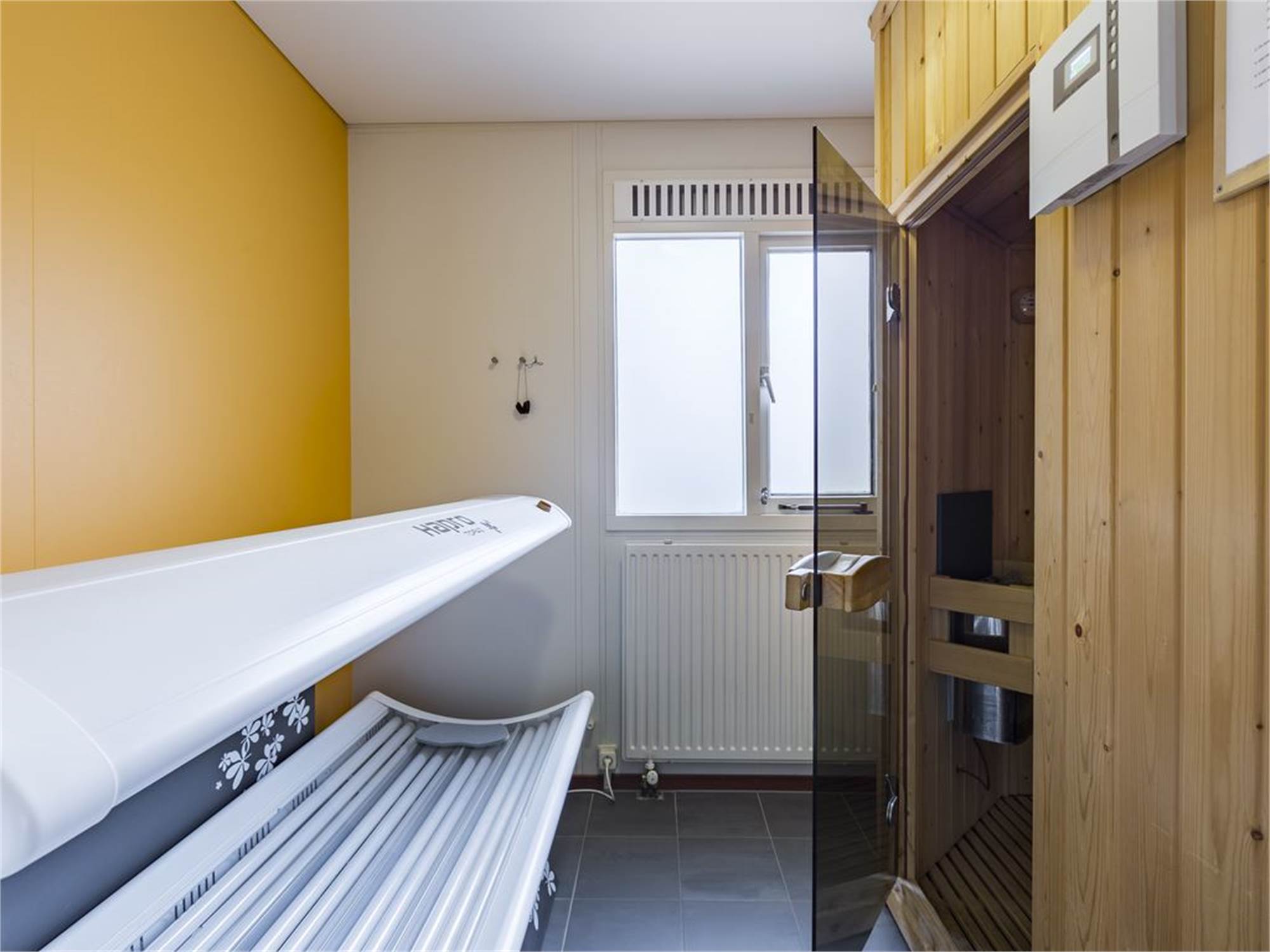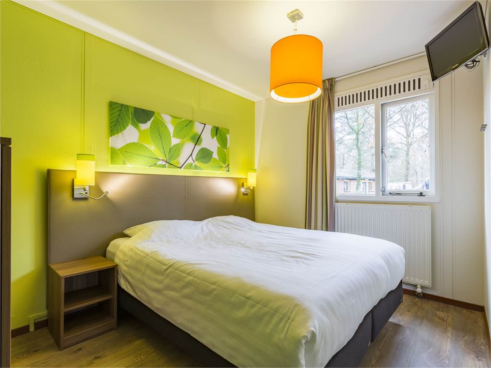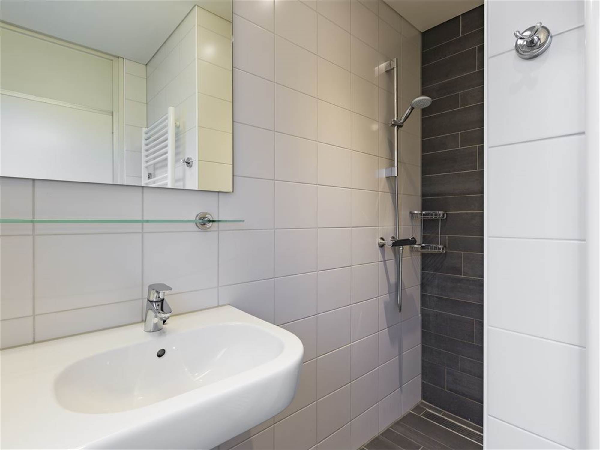 Bedroom with two single Auping box spring beds, 2 person soft mattress topper, washbasin and TV