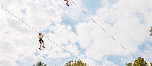 The zip wire is a cable way of 100 meters long and 12 meters high. You skim from one side to the other at breakneck speed. From 8 years old. Wear sporty clothes and closed shoes.
