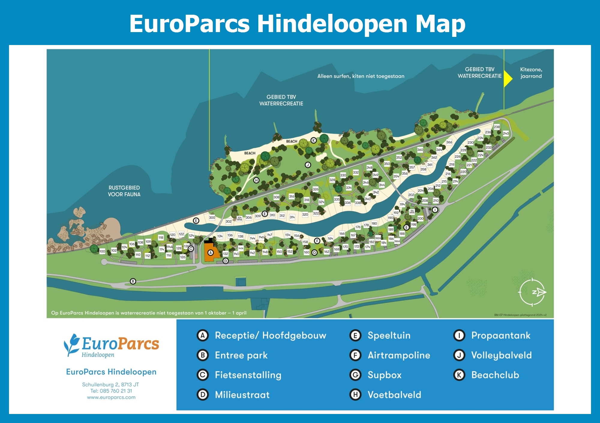 Up-to-date and comprehensive village map of EuroParcs Hindeloopen with all accommodations and facilities, also available as PDF.