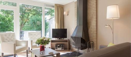Bedroom with two single Auping box spring beds, soft mattress topper and TV