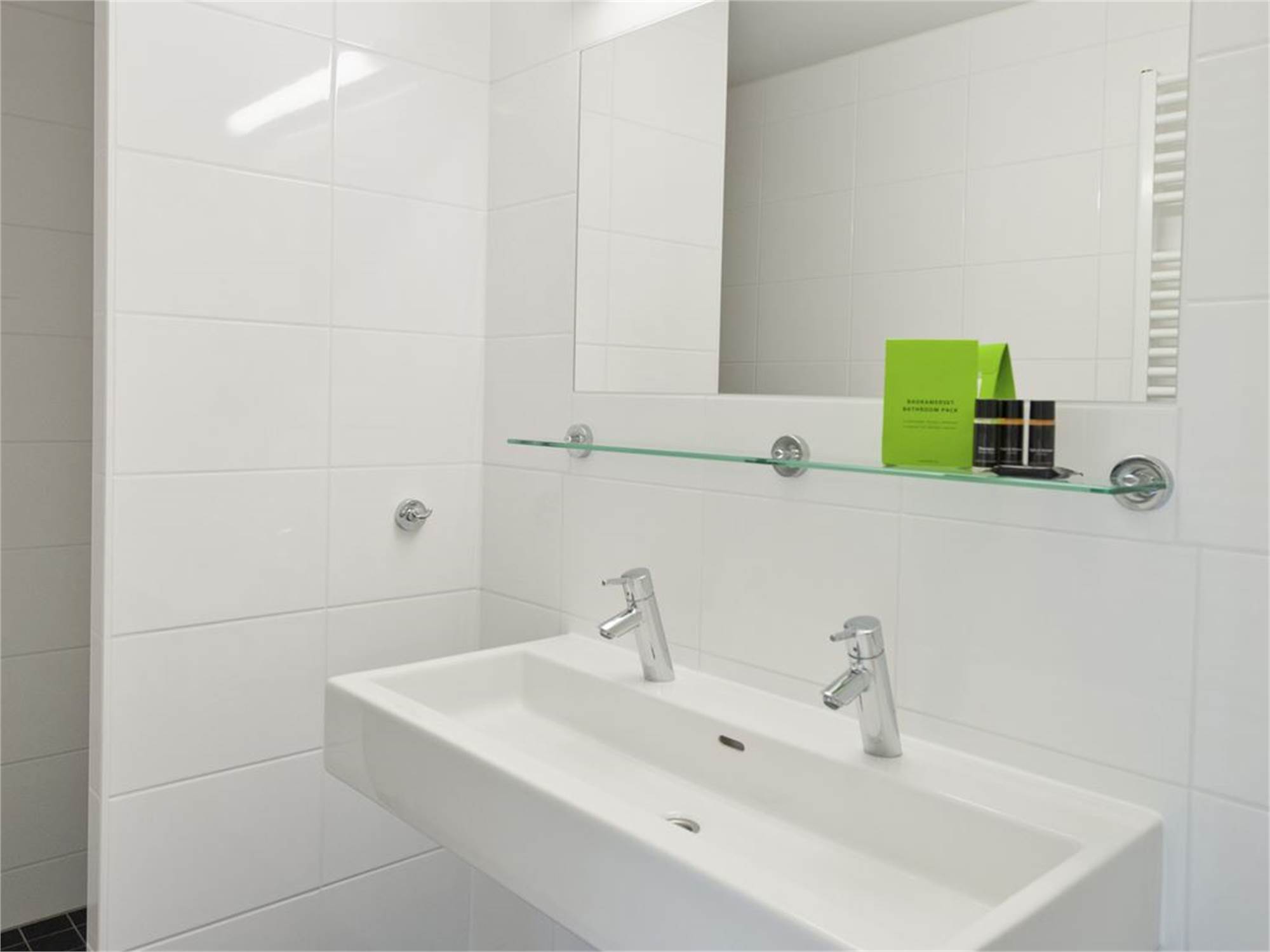 Bathroom with shower cubicle and double washbasin