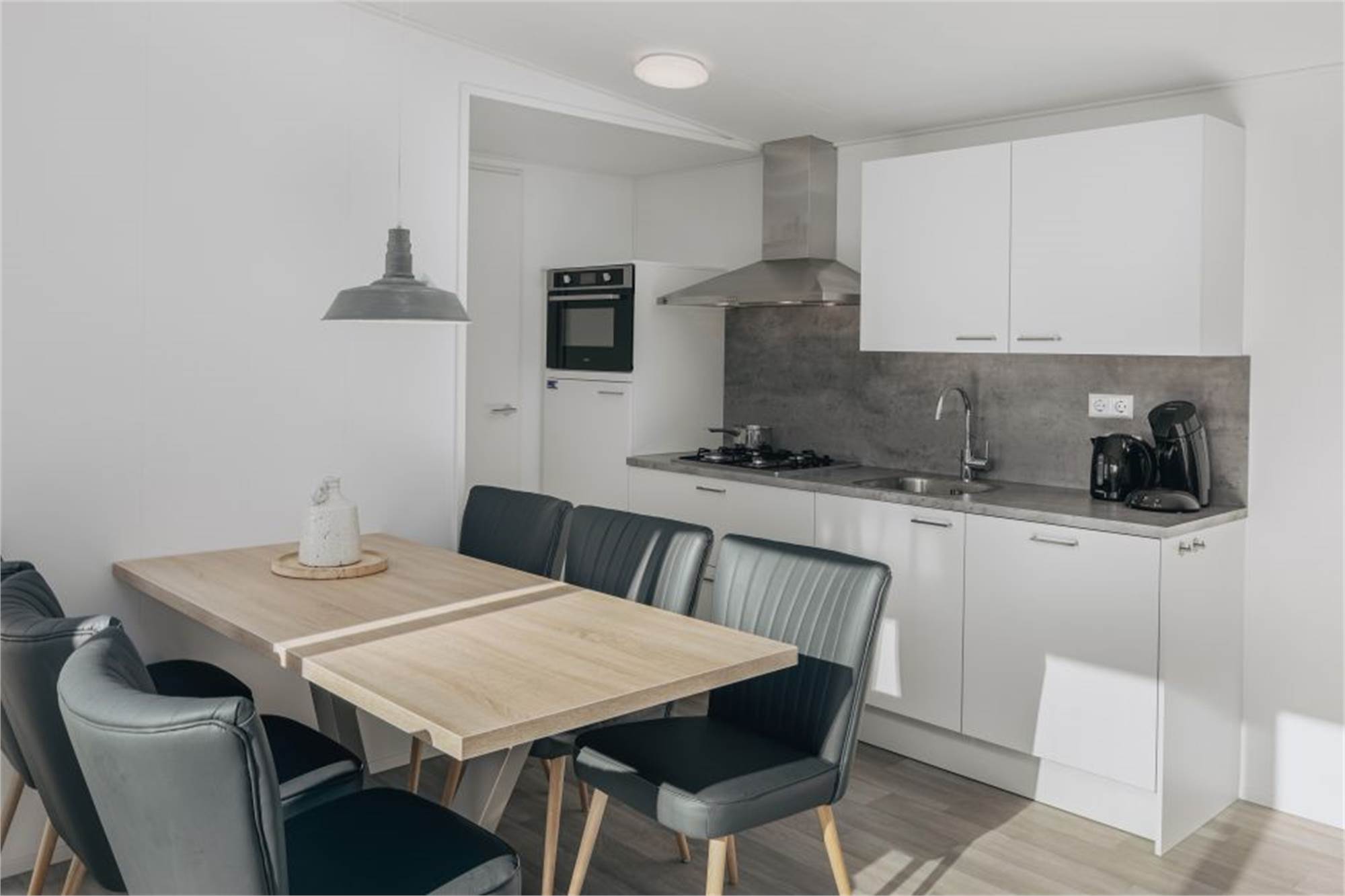 This detached chalet is suitable for 6 persons and has a living room with sitting area and smart tv. The kitchen includes a dishwasher, combination microwave, a coffee pad machine and more. In addition, the house has 3 bedrooms, each with 2 single beds, and 1 bedroom with a bunk bed. A cot can be placed in the living room. The bathroom has a walk-in shower and a toilet. There is also a terrace with patio furniture and parking near the chalet. You can use the free Wi-Fi.