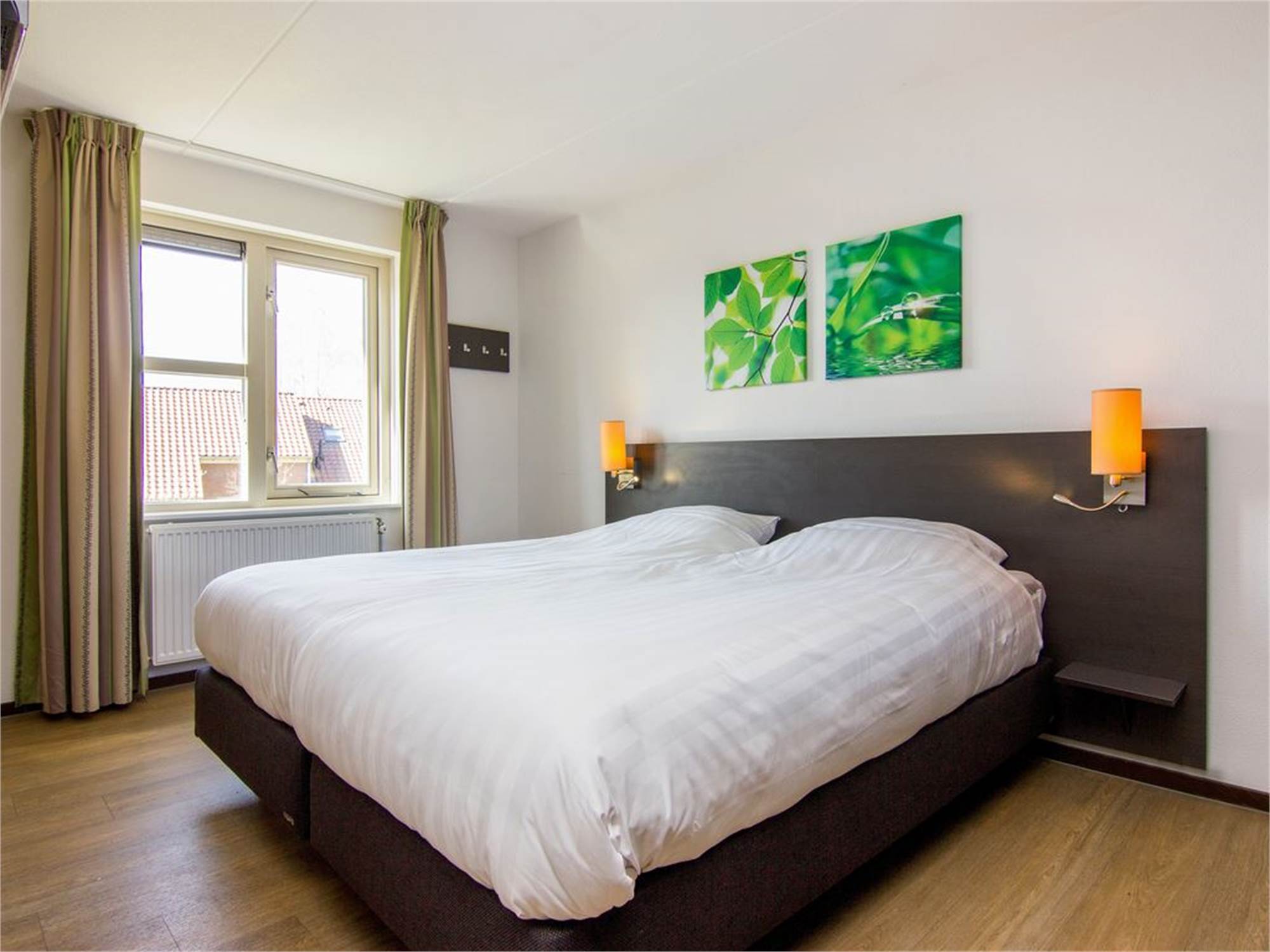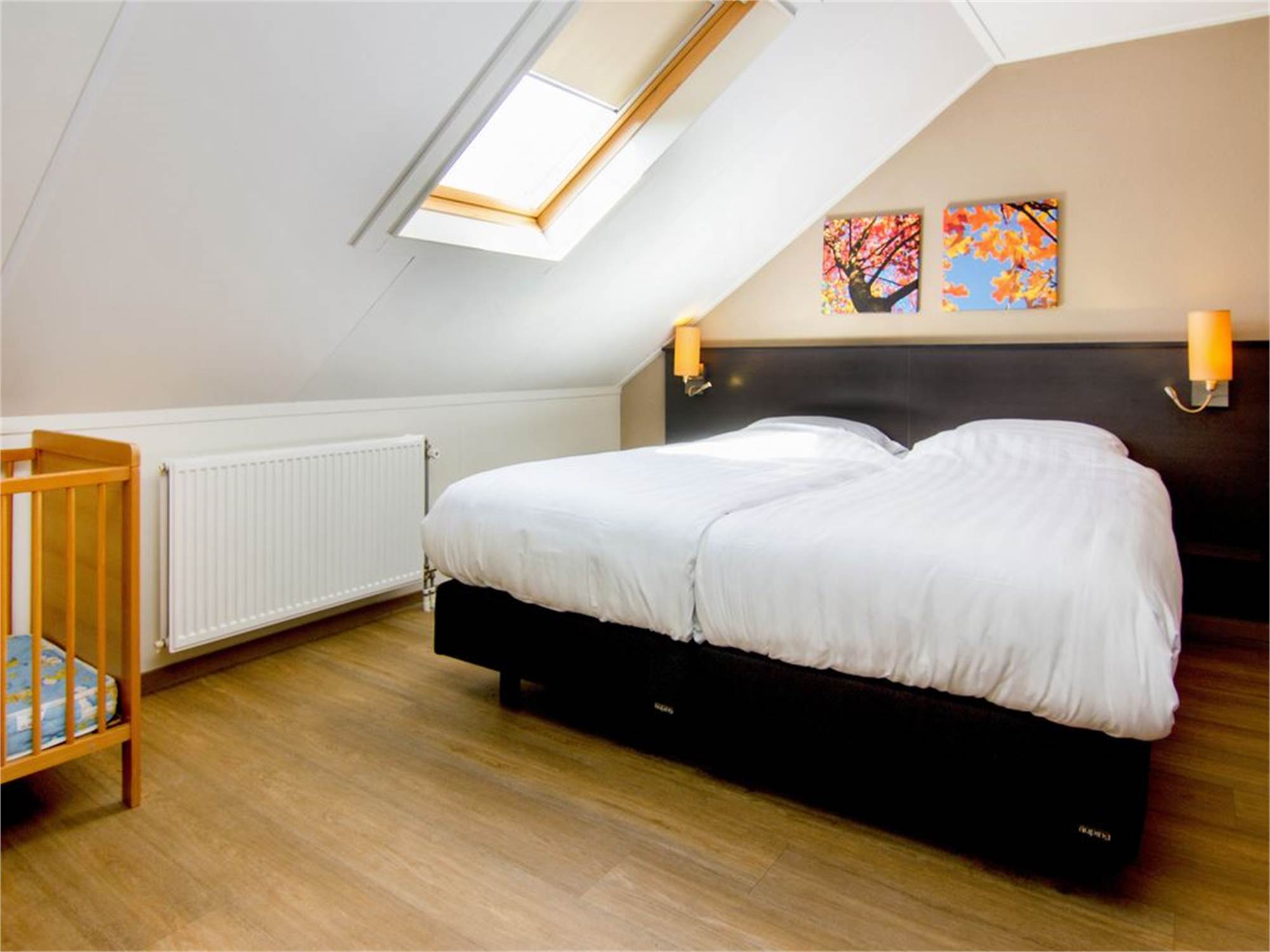 Bedroom with two single Auping box spring beds, soft mattress topper and TV