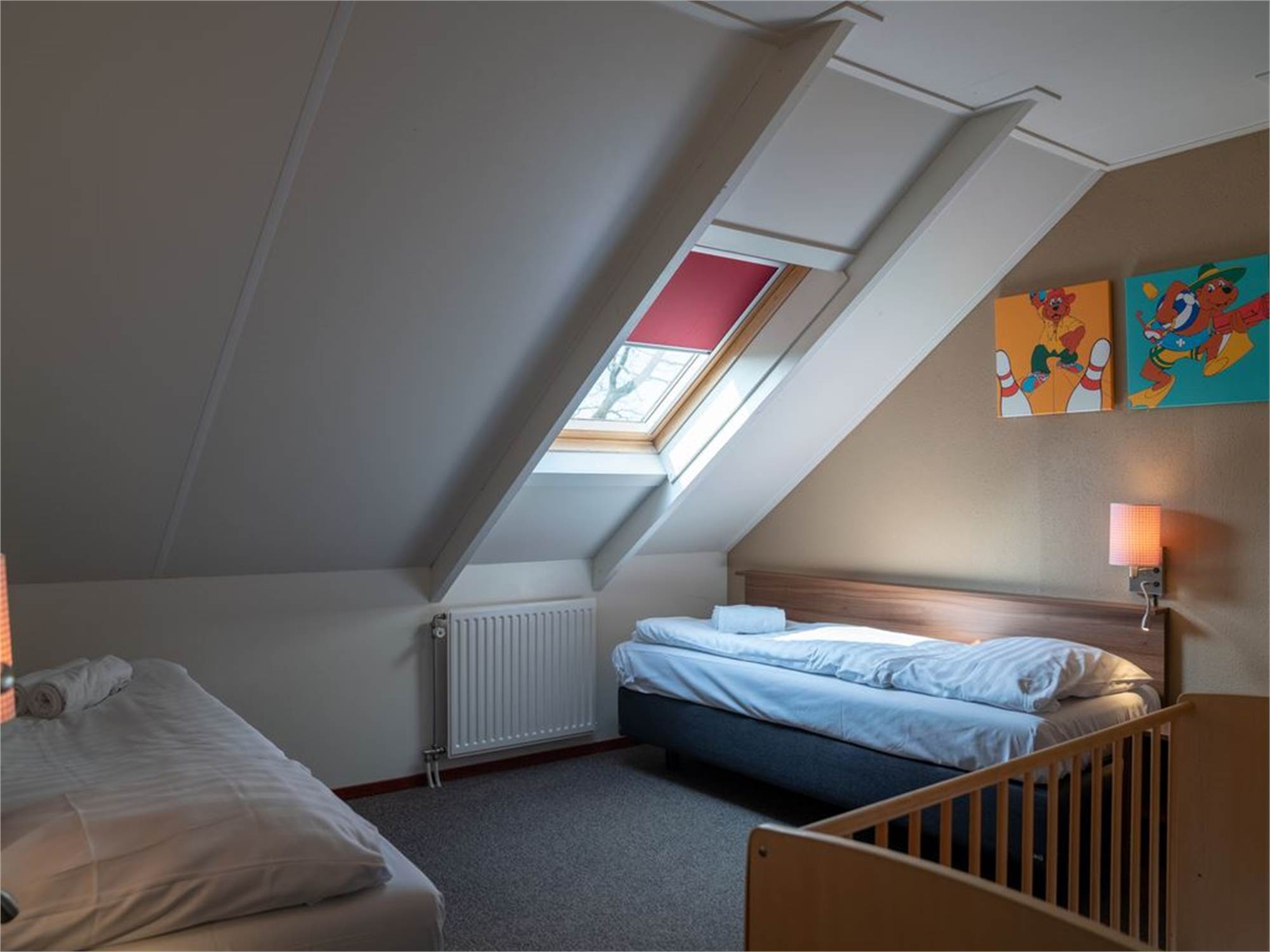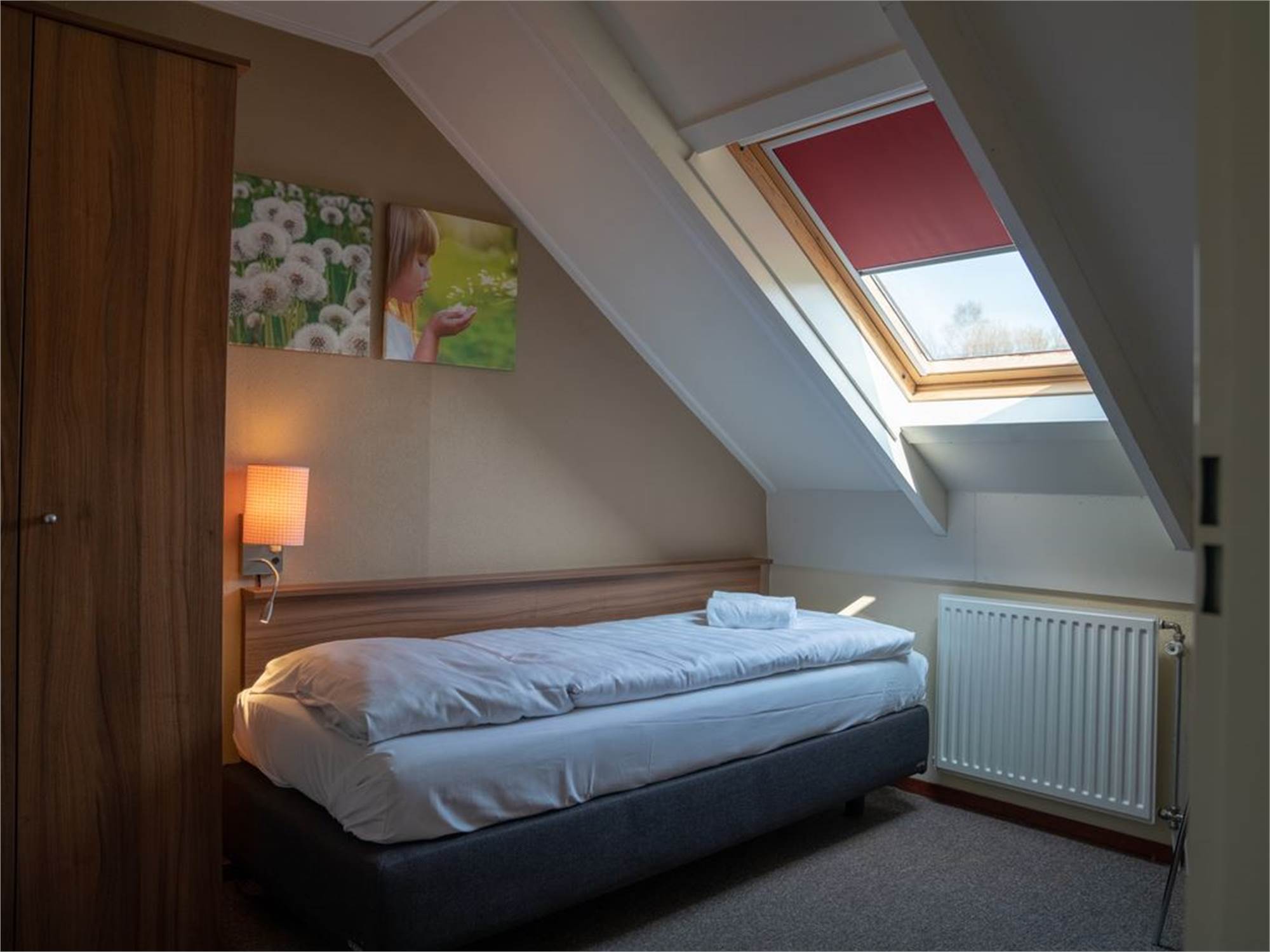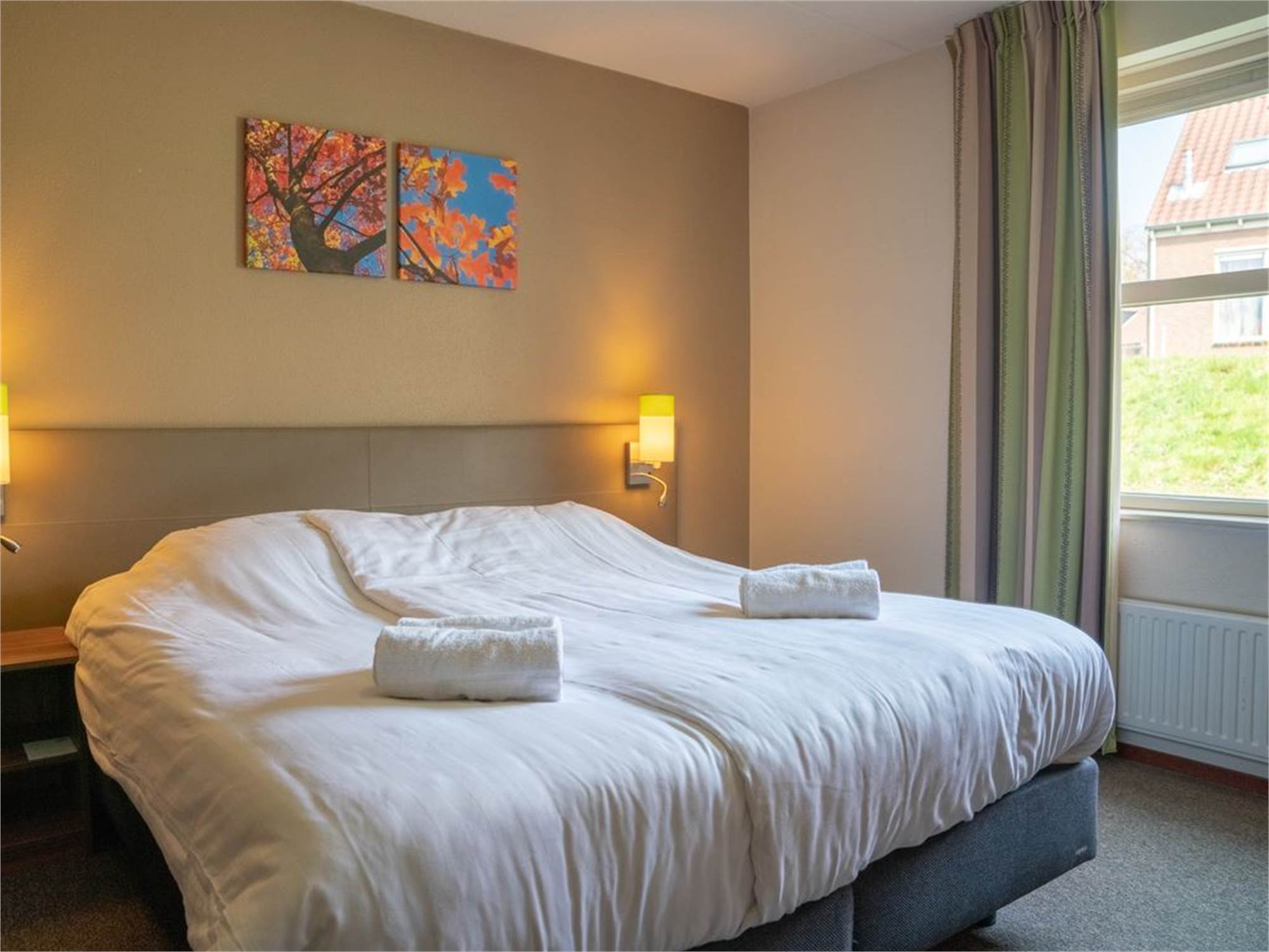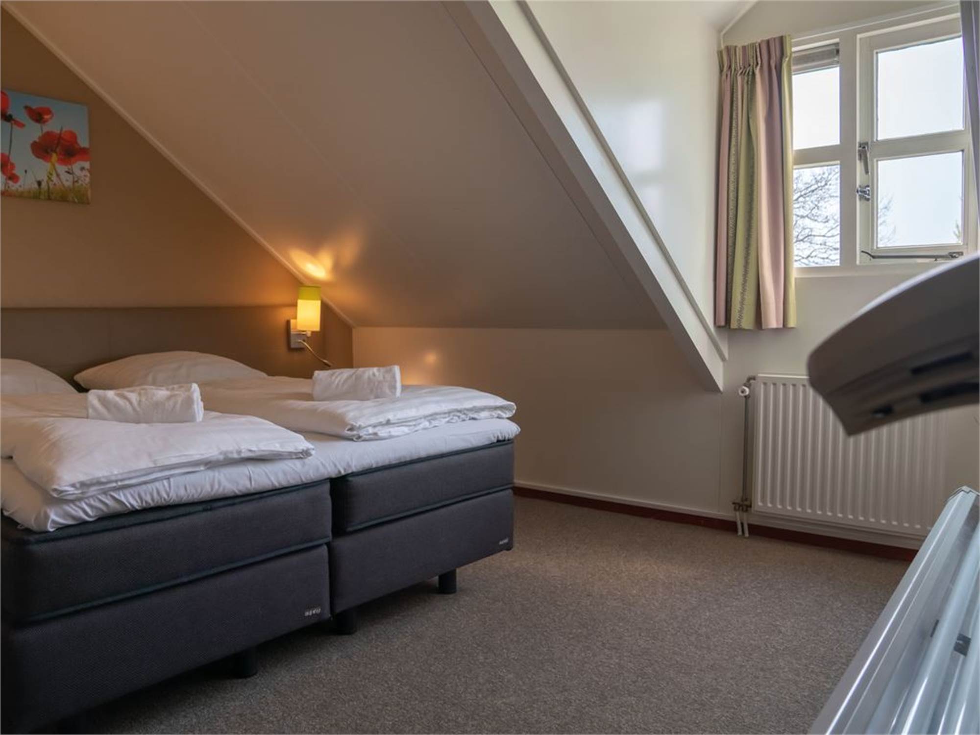 Bedroom with two single Auping box spring beds, soft mattress topper and TV