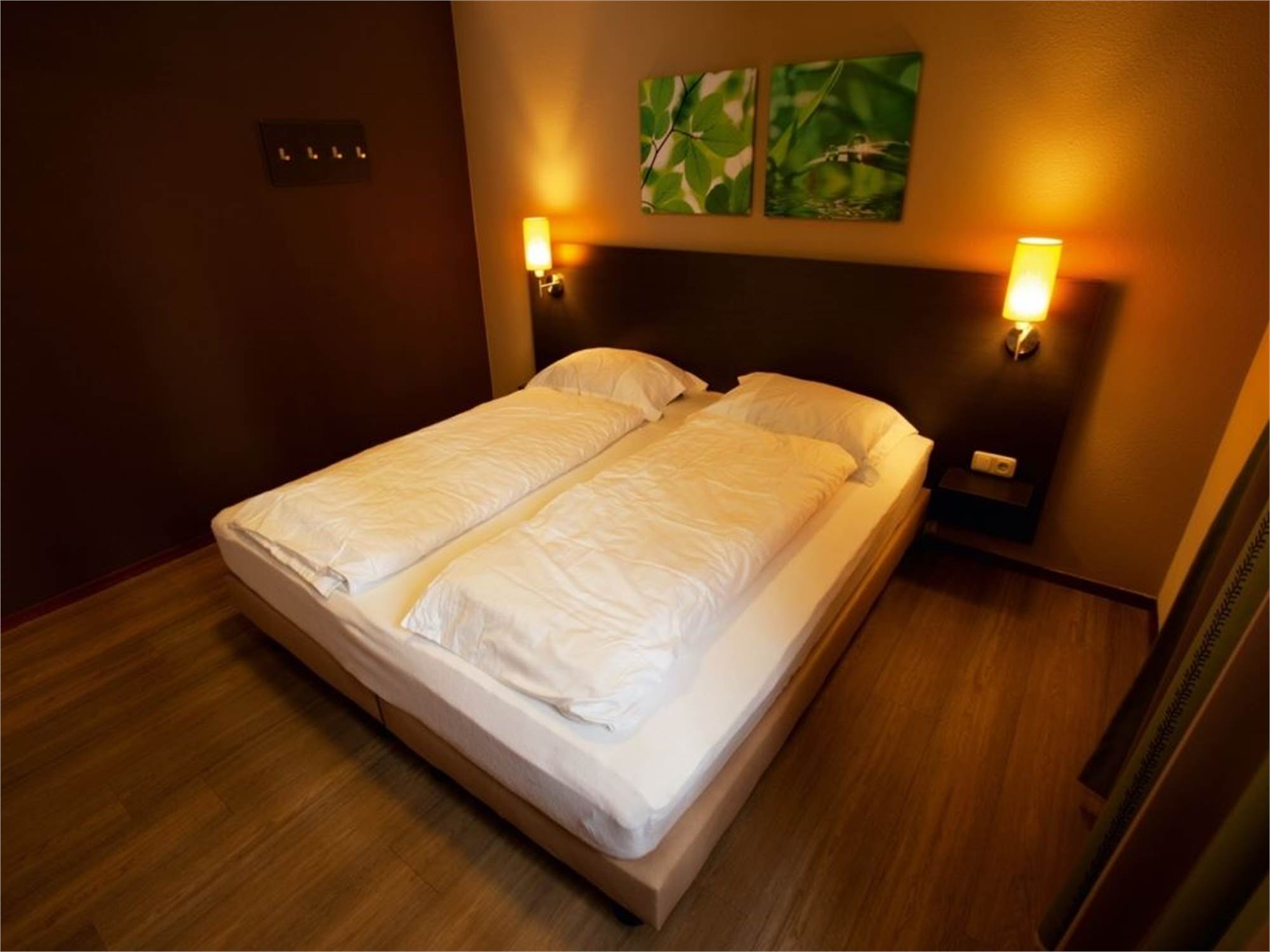 Bedroom with two single Auping box spring beds, 2 person soft mattress topper and flatscreen TV