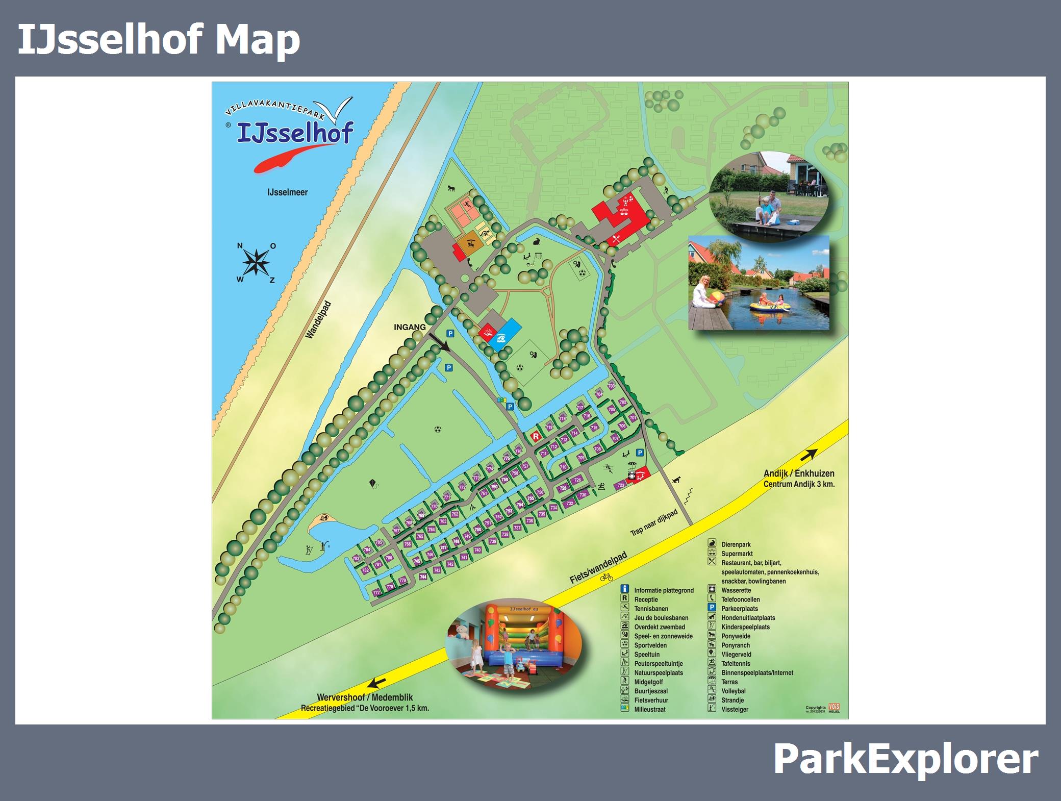 Up-to-date and comprehensive village map of IJsselhof with all accommodations and facilities, also available as PDF.