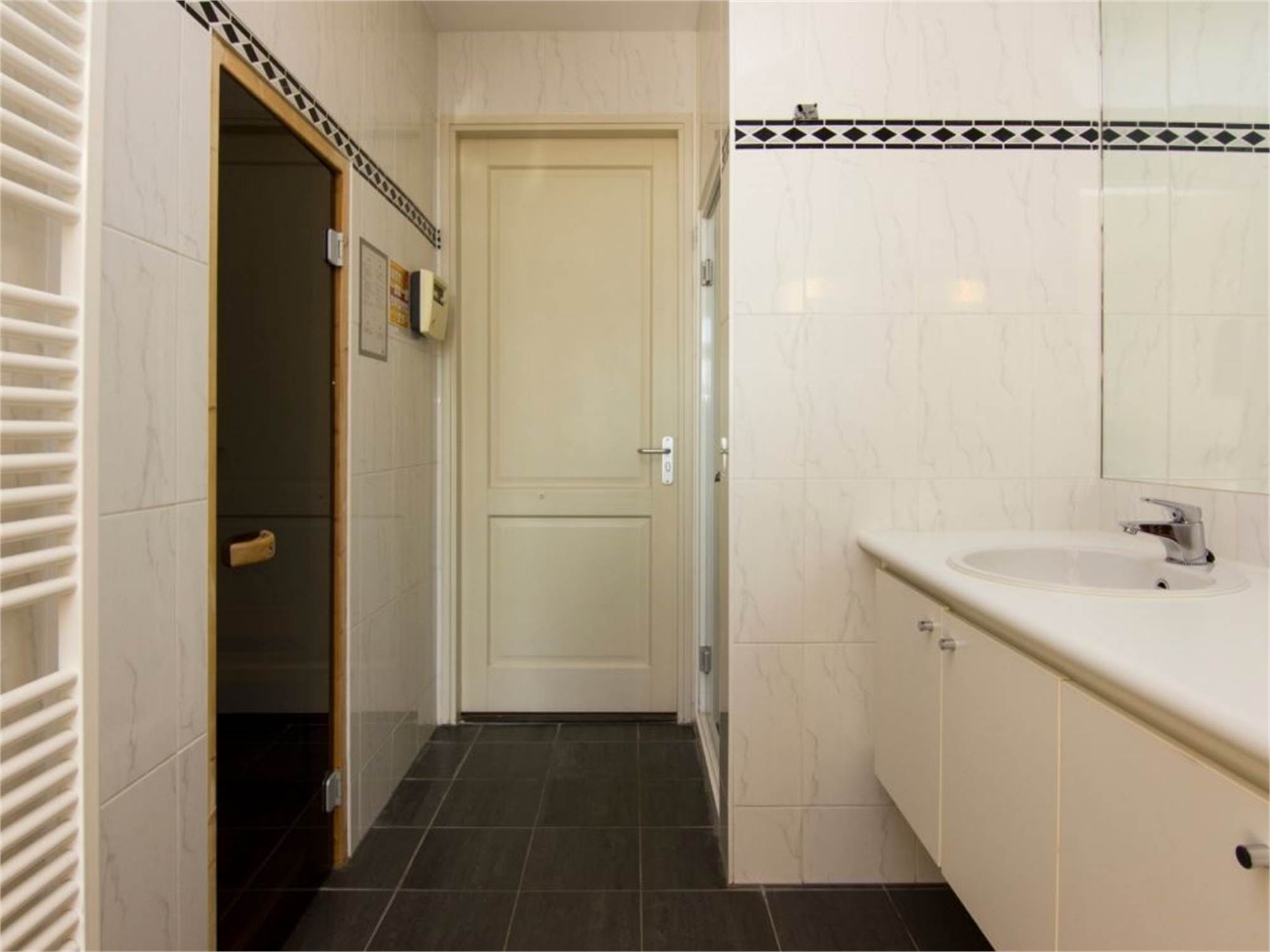 Bathroom with steam shower and double washbasin