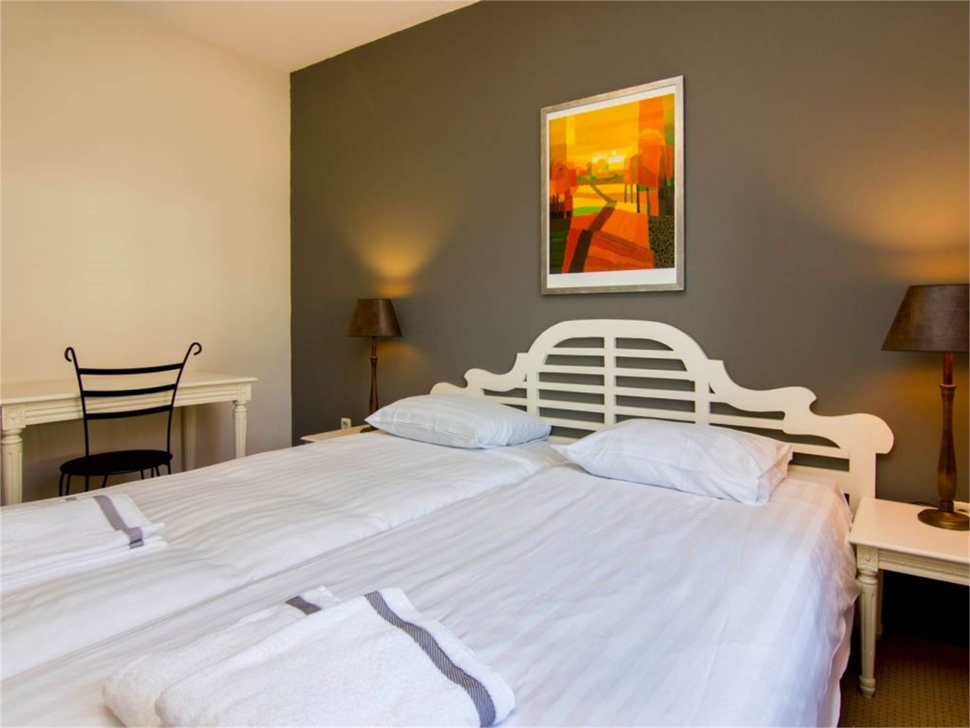 Bedroom with two single box spring beds