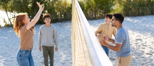 Pick the best team you can and get out on the sand for a beach volleyball match!