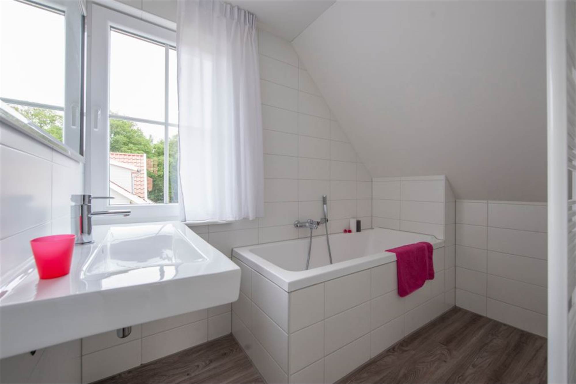 This detached luxury villa at Résidence Klein Vink is suitable for four people. The entrance hallway brings you to the sunny living room with French doors to the terrace. The kitchen is equipped with top-range built-in appliances, including a dishwasher. Upstairs are two attractive bedrooms, both with two twin beds. Enjoy the comfort of two bathrooms in this villa, including one with a bathtub. There are separate toilets on both floors. There is also a washing machine in the storage room. Wi-Fi is available free of charge.