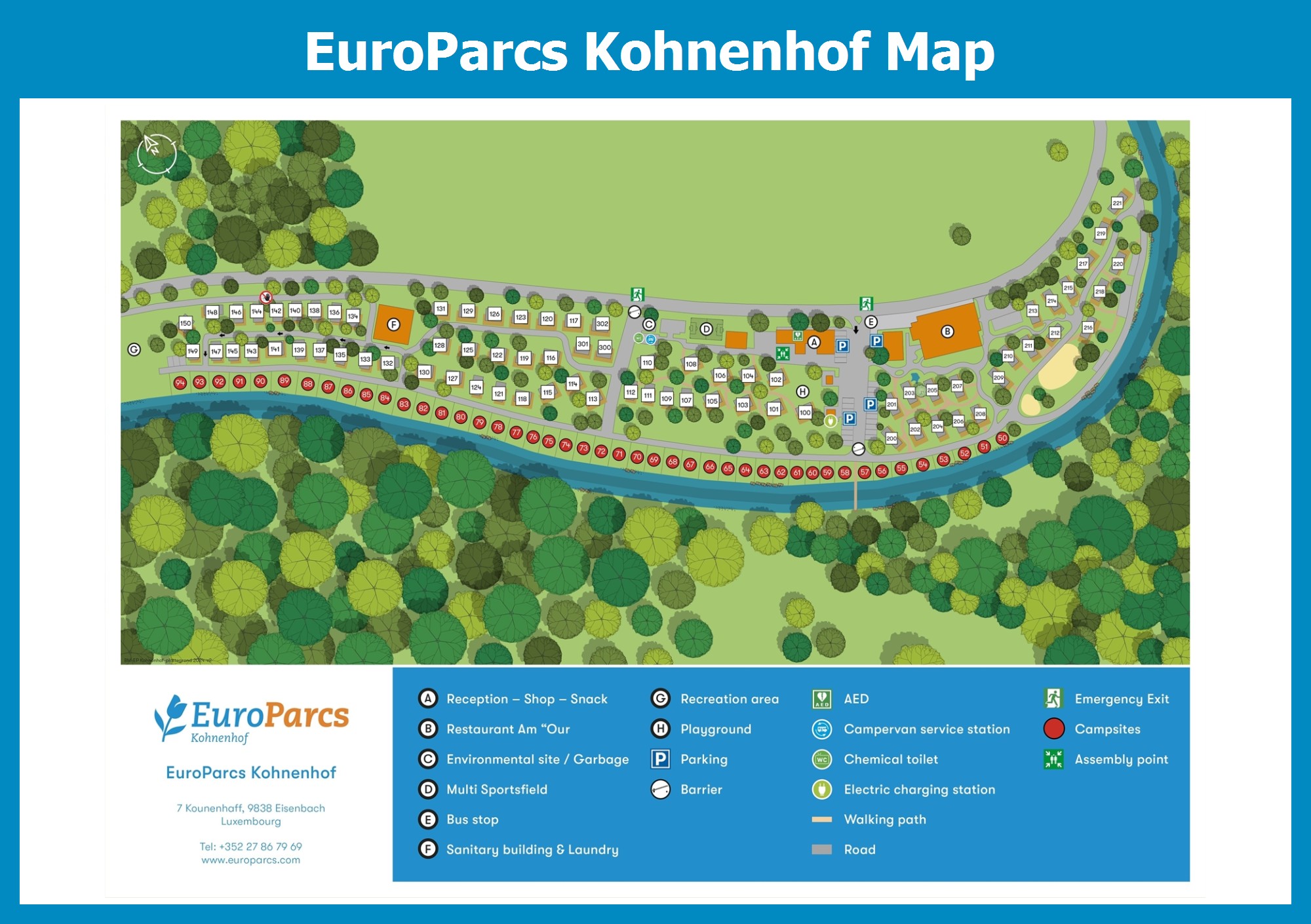 Up-to-date and comprehensive village map of EuroParcs Kohnenhof with all accommodations and facilities, also available as PDF.