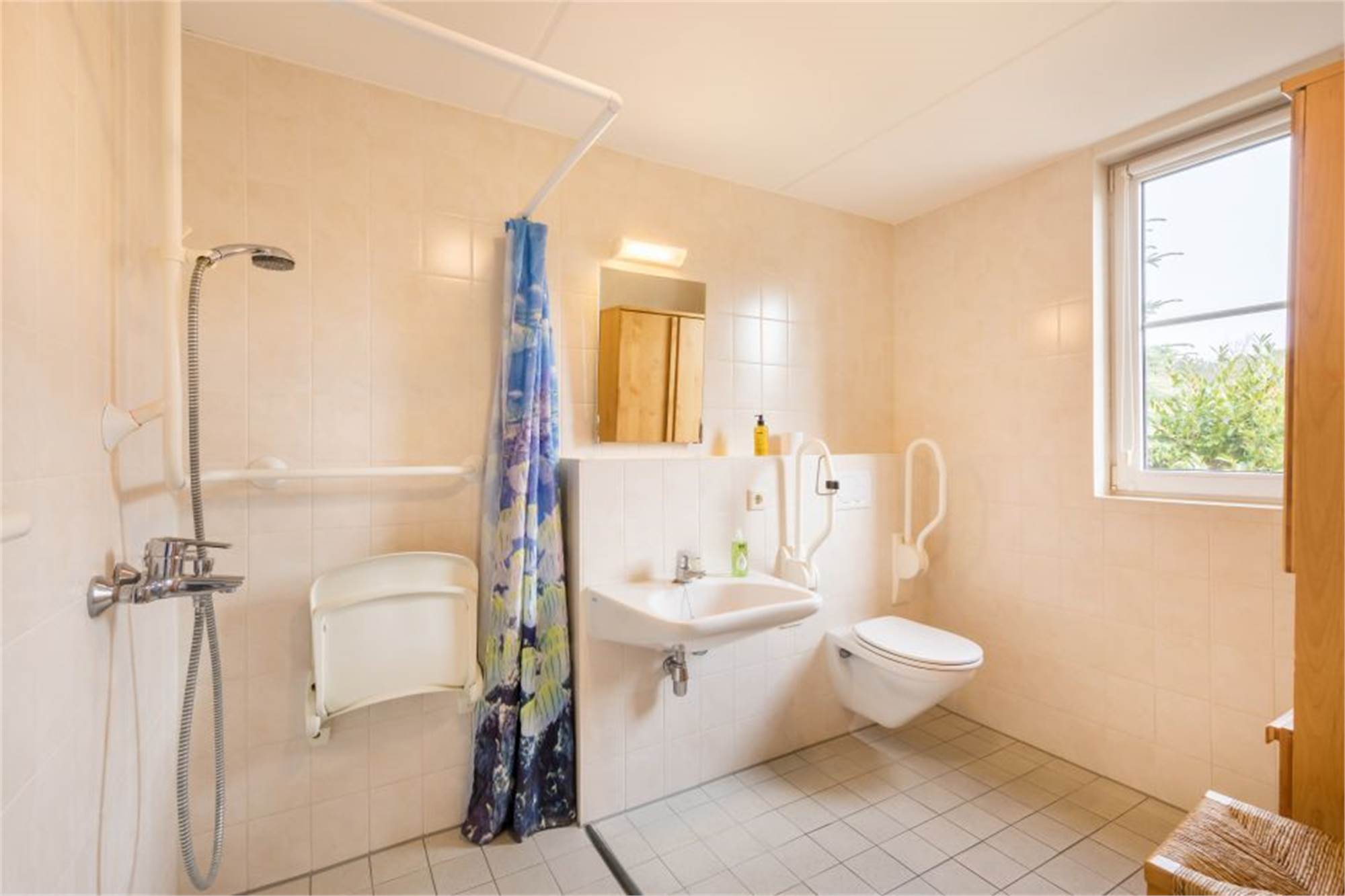 Surface ca 115m². With adjustments for disabled people. Groundfloor: livingroom with open kitchen and dishwasher. Bedroom with extra television and access to bathroom with bath and separate shower. Terrace with furniture. First floor: two bedrooms and bathroom with shower.