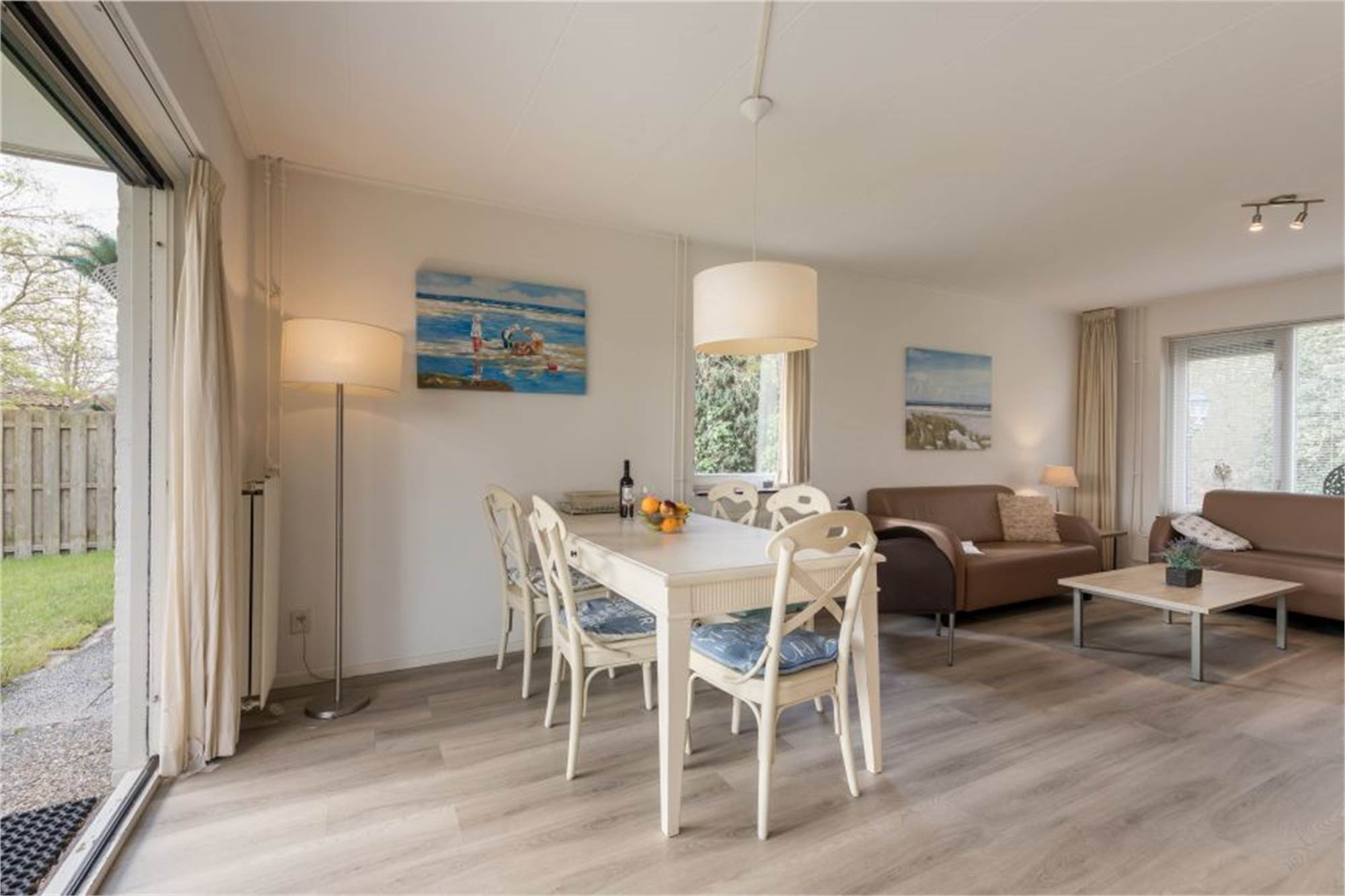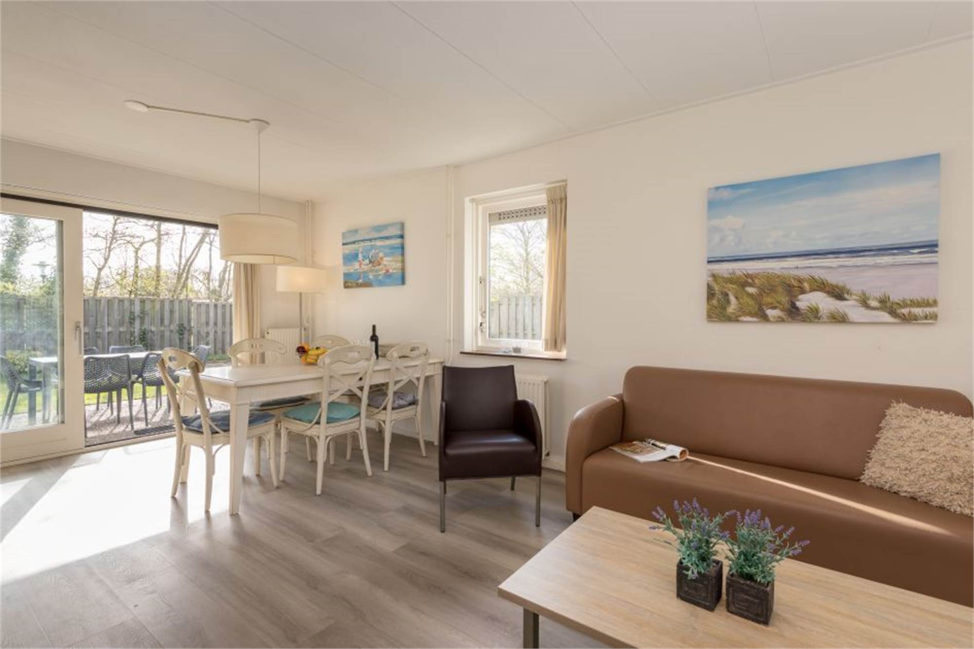This detached, single level holiday bungalow is suitable for 6 adults and 2 babies. It has 3 bedrooms, each with 2 extra long single beds. The bungalow has a separate toilet and a bathroom with a shower. It has a cosy living room with a HiFi set and a television and a fully equipped kitchen, which includes a dishwasher, oven, fridge and a microwave. The holiday accommodation also has a washing machine and a dryer. The enclosed garden and terrace face south and the bungalow also features a veranda. And you can also use free Wi-Fi.