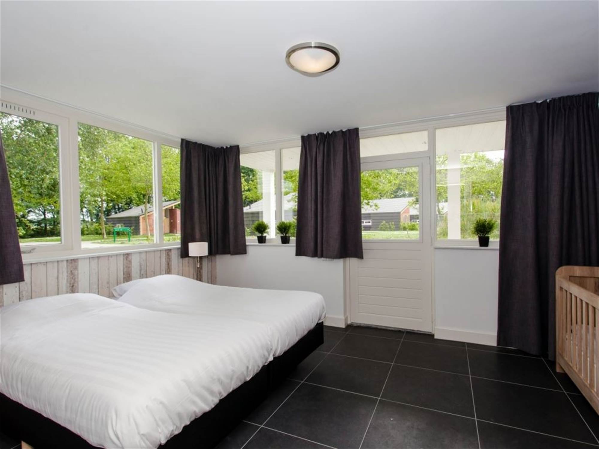 Bedroom with two single box spring beds, 2 person soft mattress topper and flatscreen TV